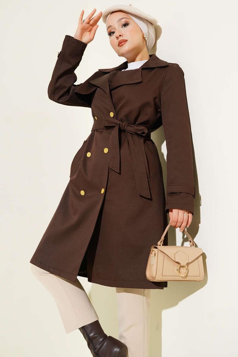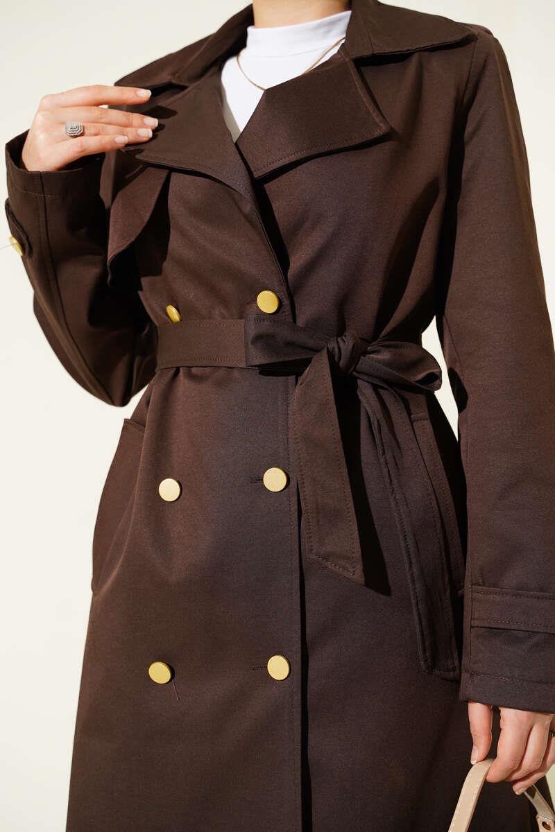 Tek Omuz Apoletli Kruvaze Trençkot Kahve (0999-6217-688863)