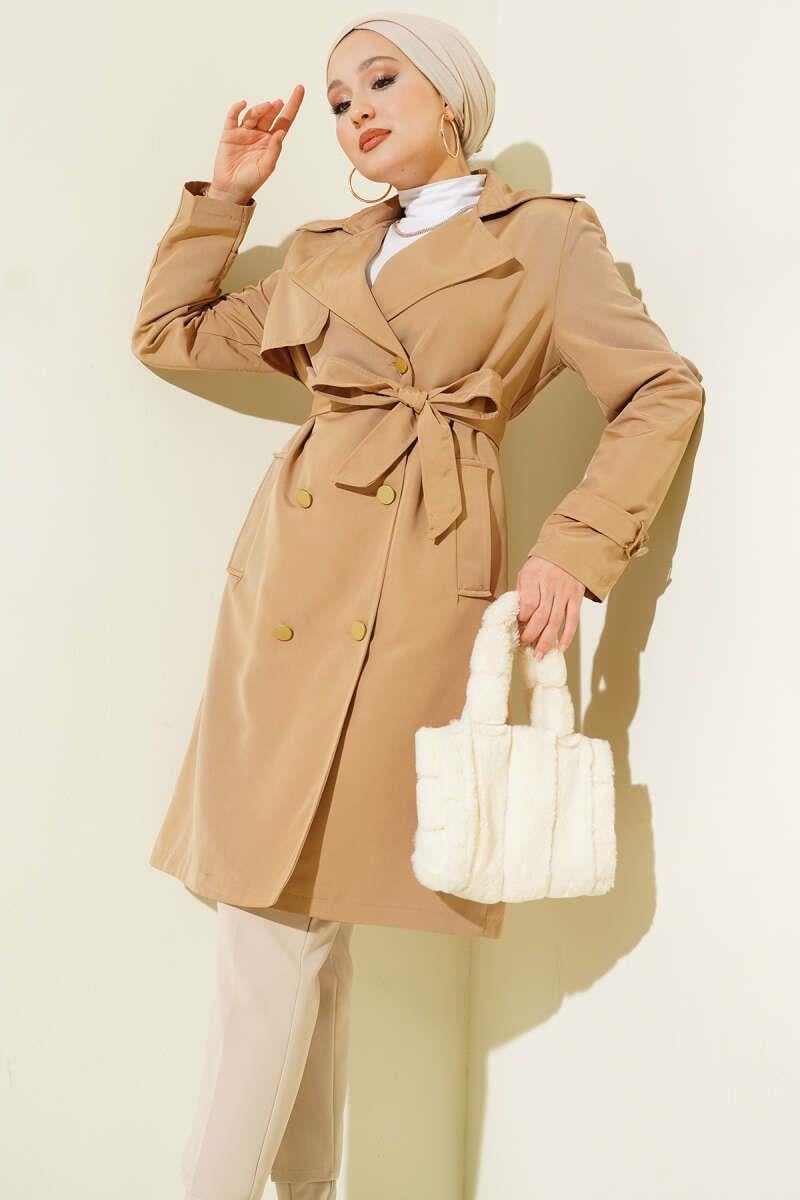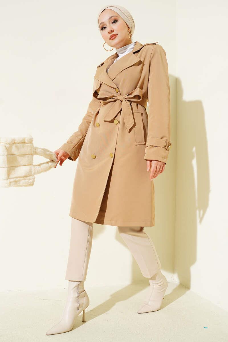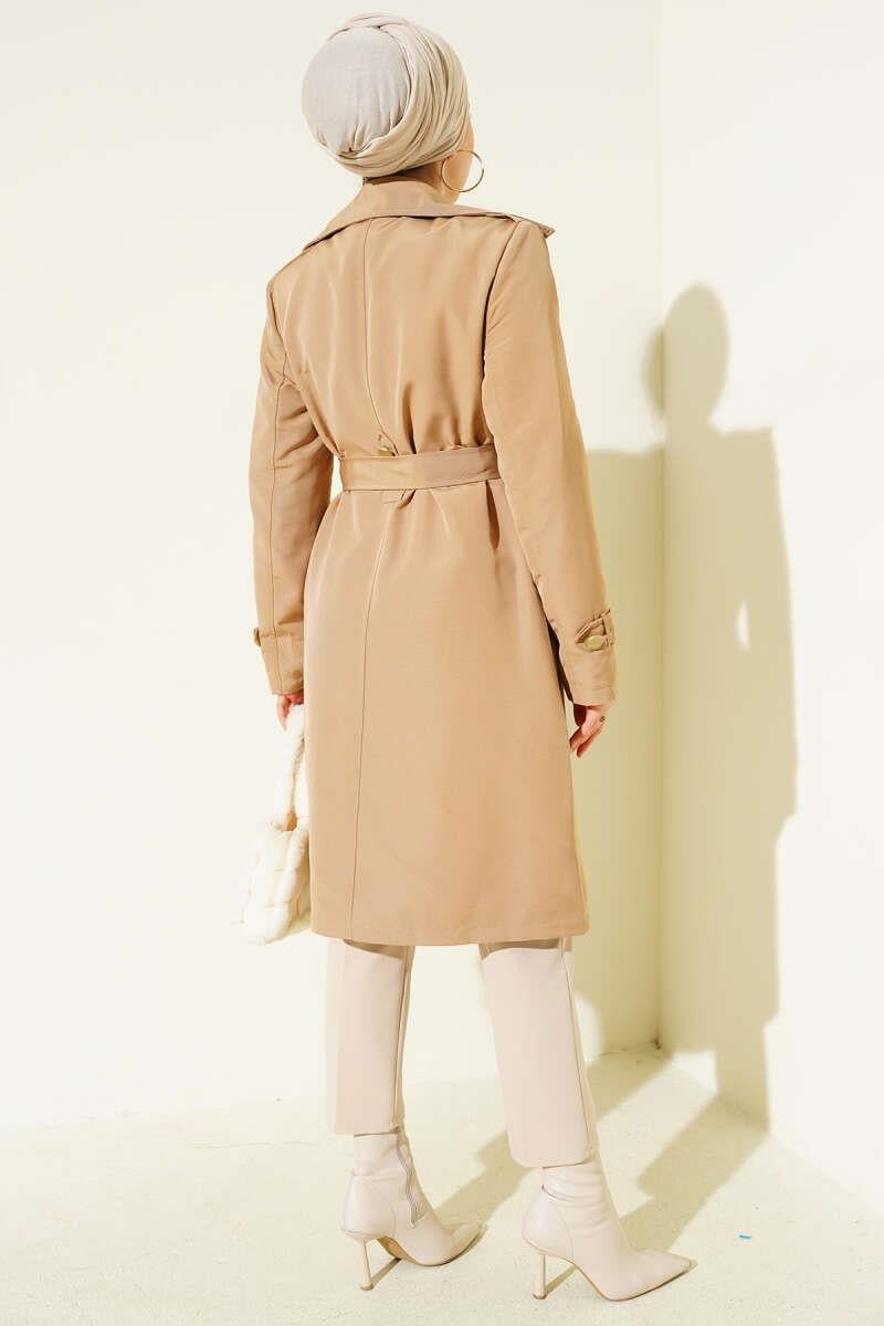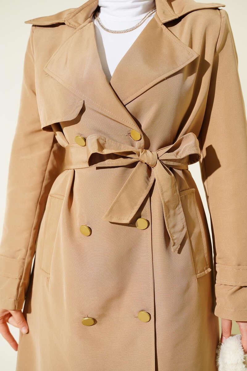 Tek Omuz Apoletli Kruvaze Trençkot Latte (0999-6217-688872)