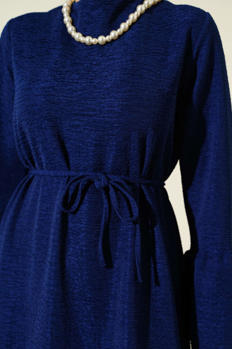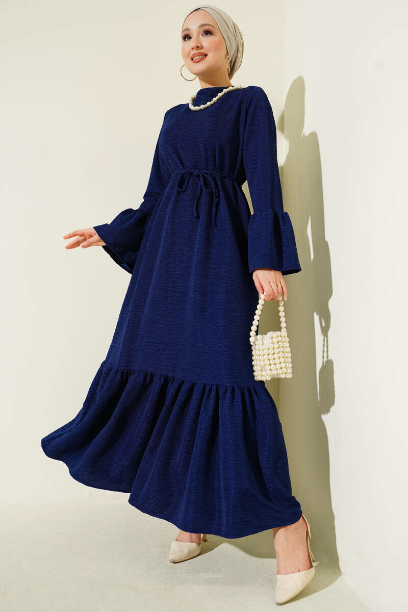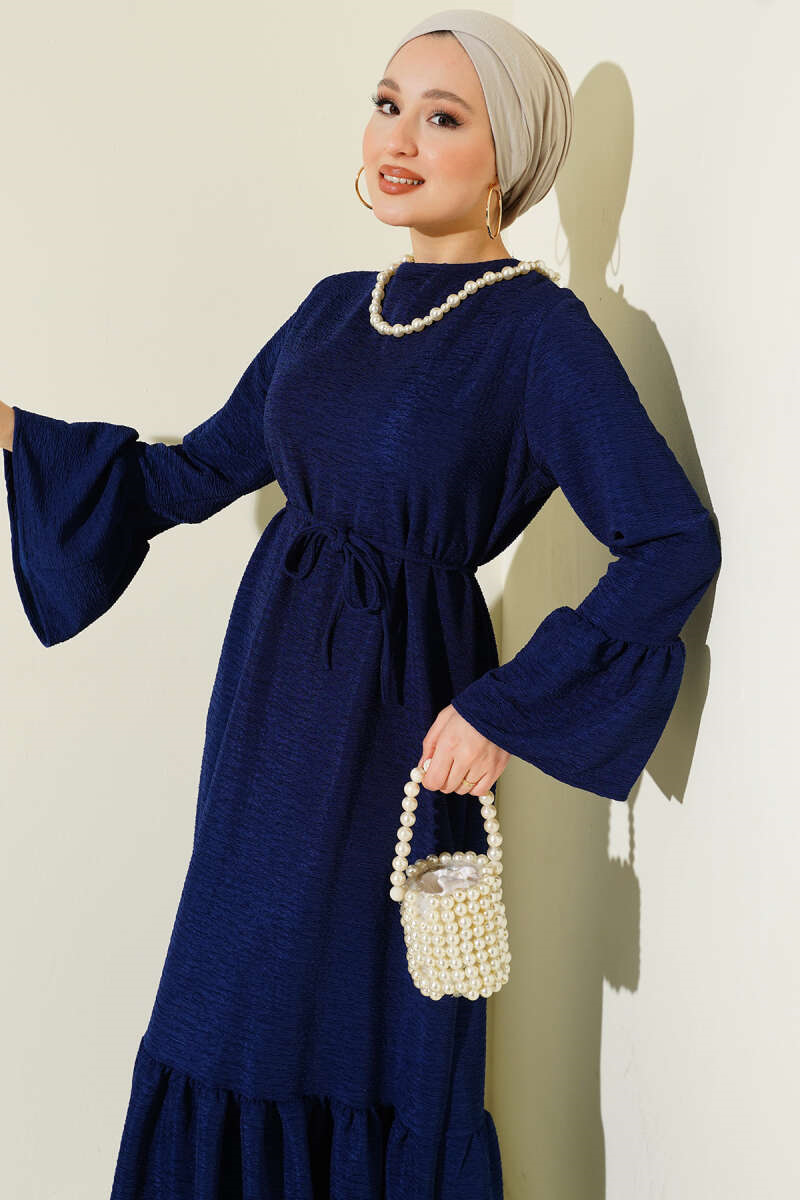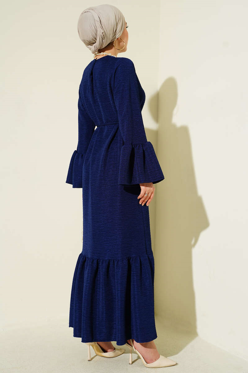 Volanlı Damla Örme Elbise Lacivert (0537-4607-722605)