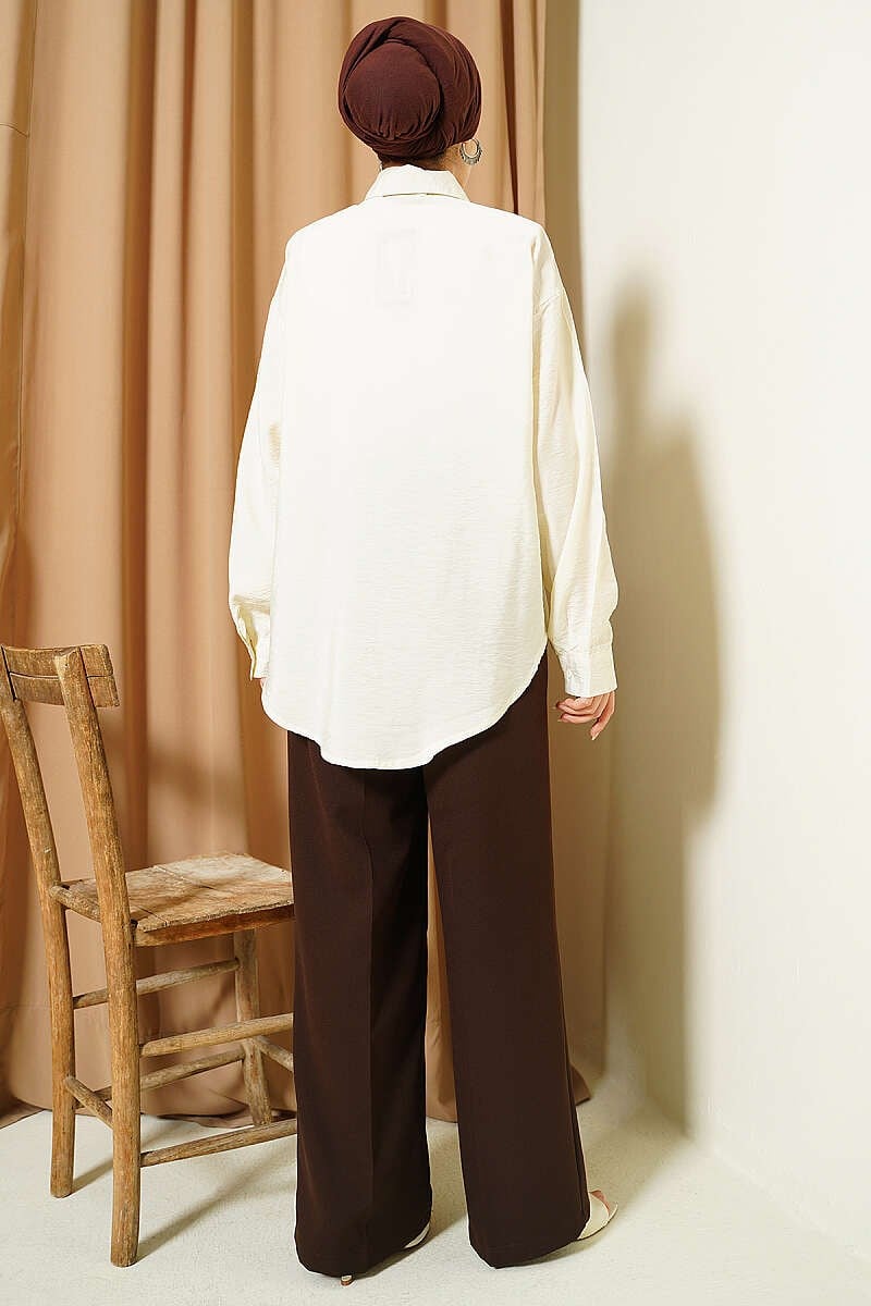 Yaka Fularlı Basic Gömlek Krem (0582-13180-753791)