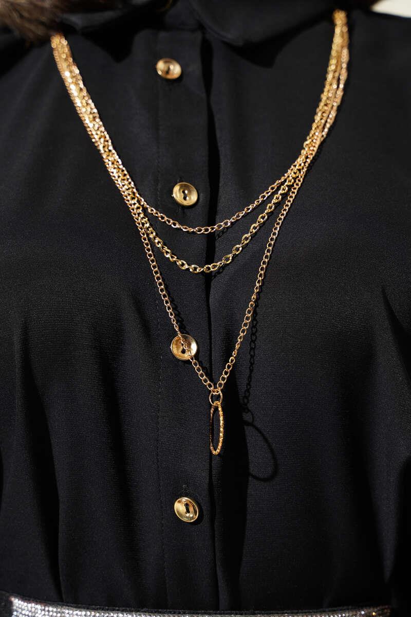 Yarasa Kol Kolyeli Oversize Gömlek Siyah (0532-2454-615845)