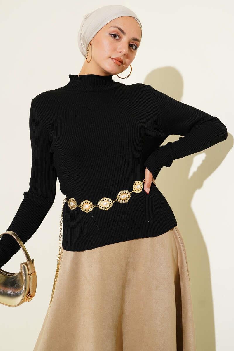Yarım Boğazlı Balıkçı Triko Kazak Siyah (8374-9759-669608)