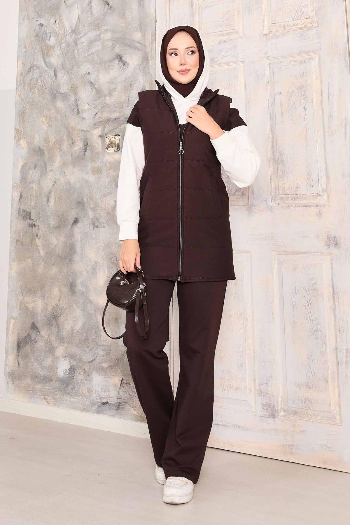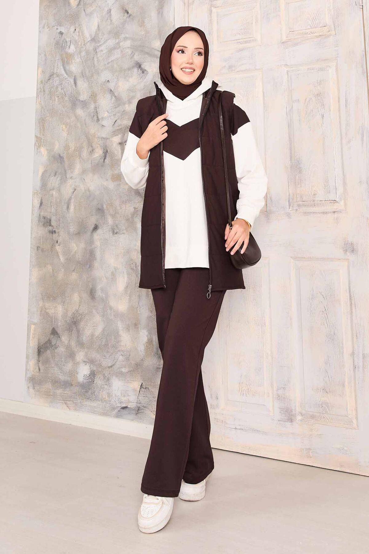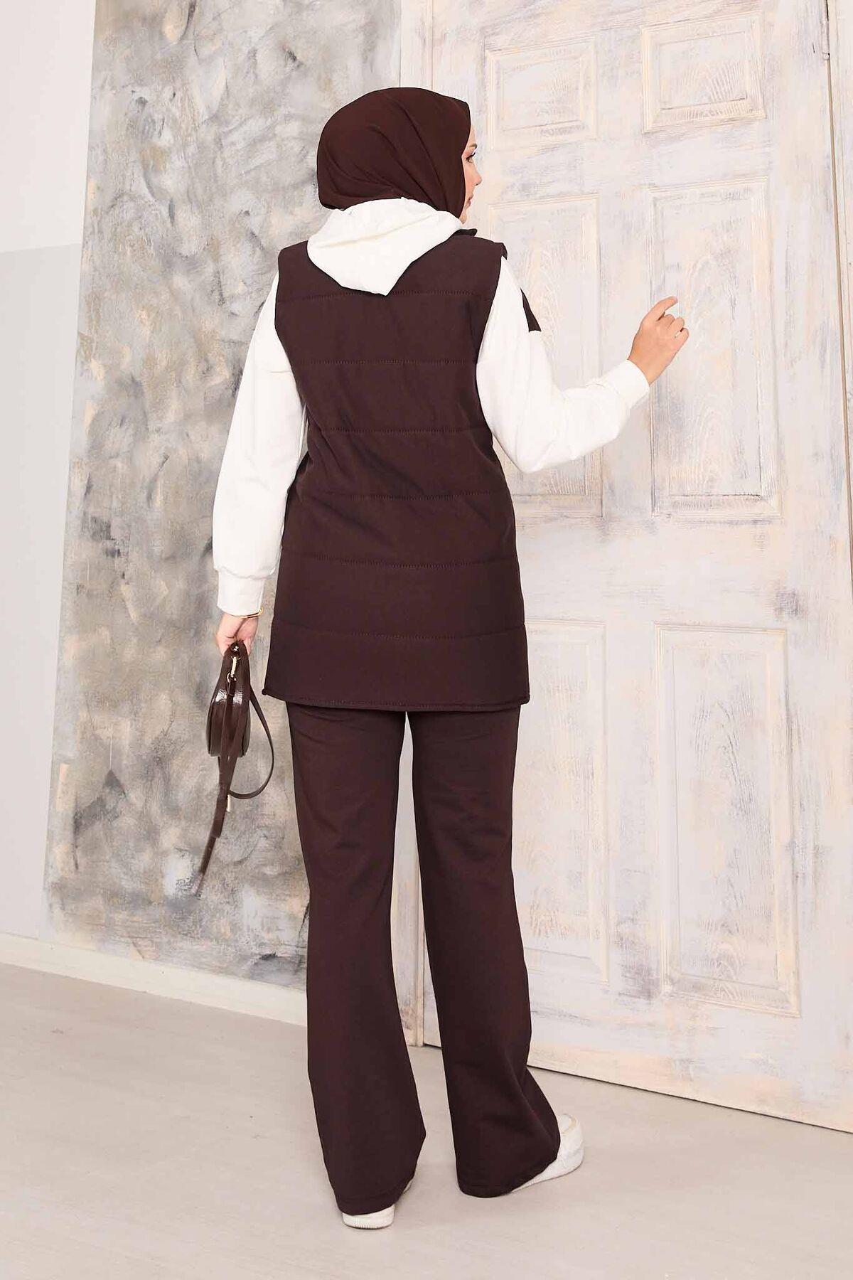 Yelek Sweat Pantolon Üçlü Takım Kahve (125M01727756R251)