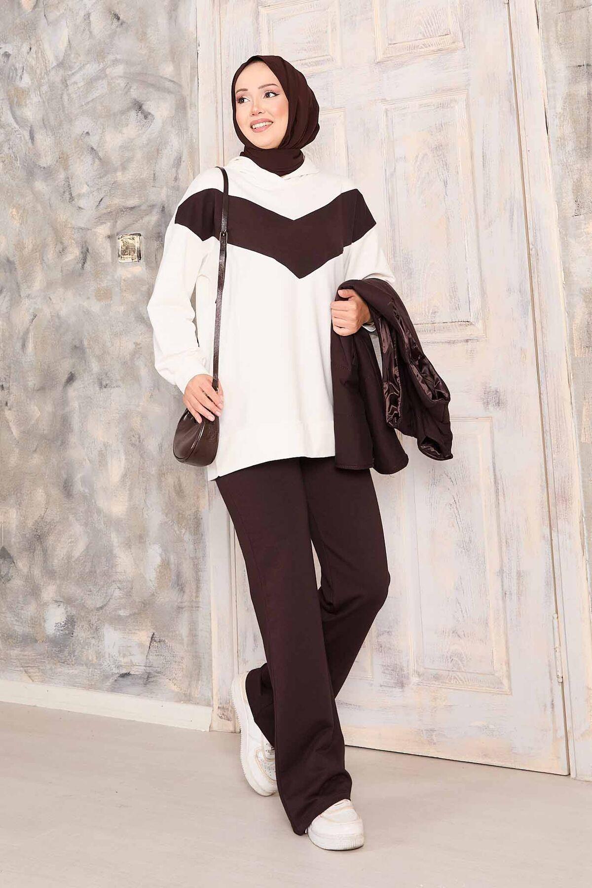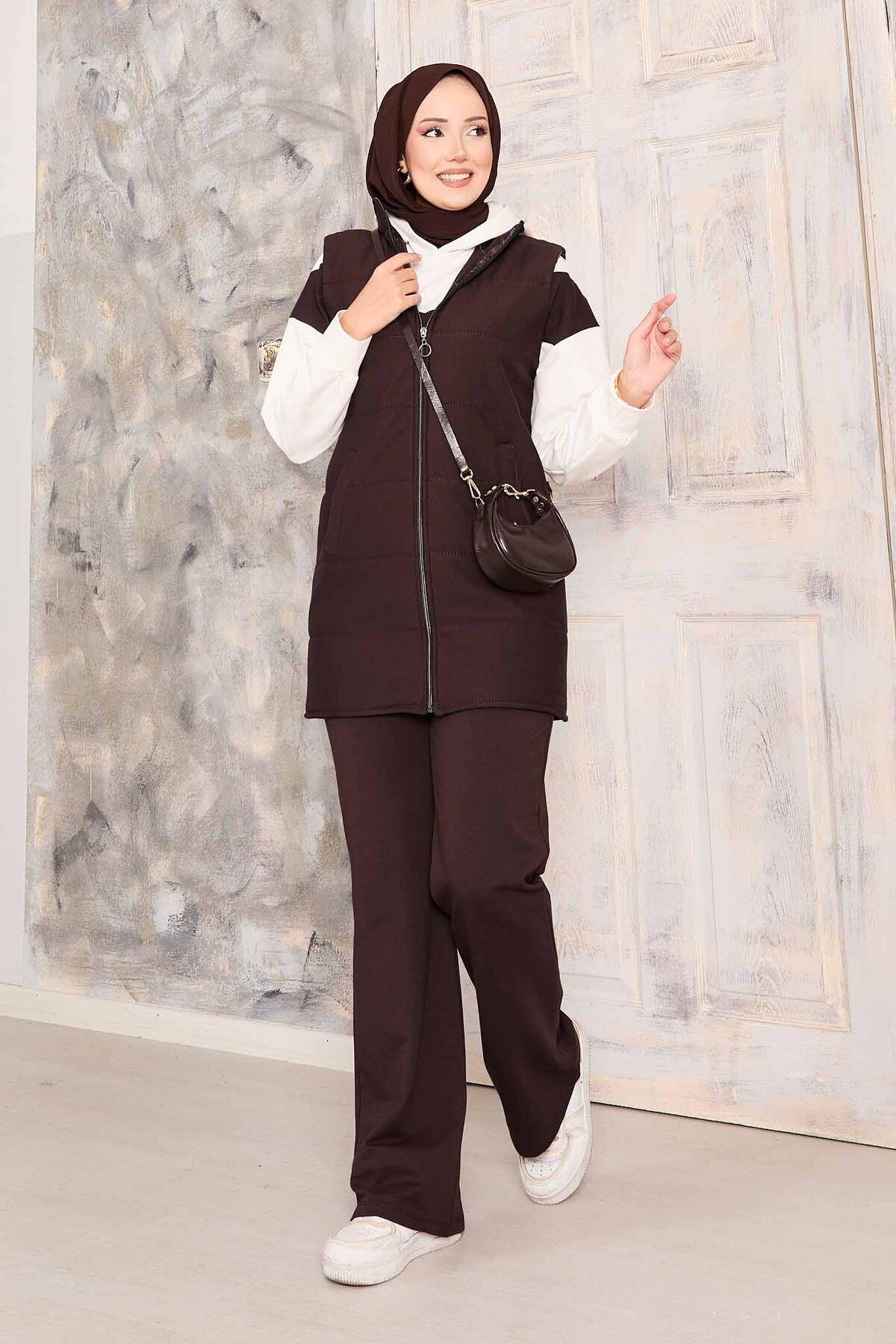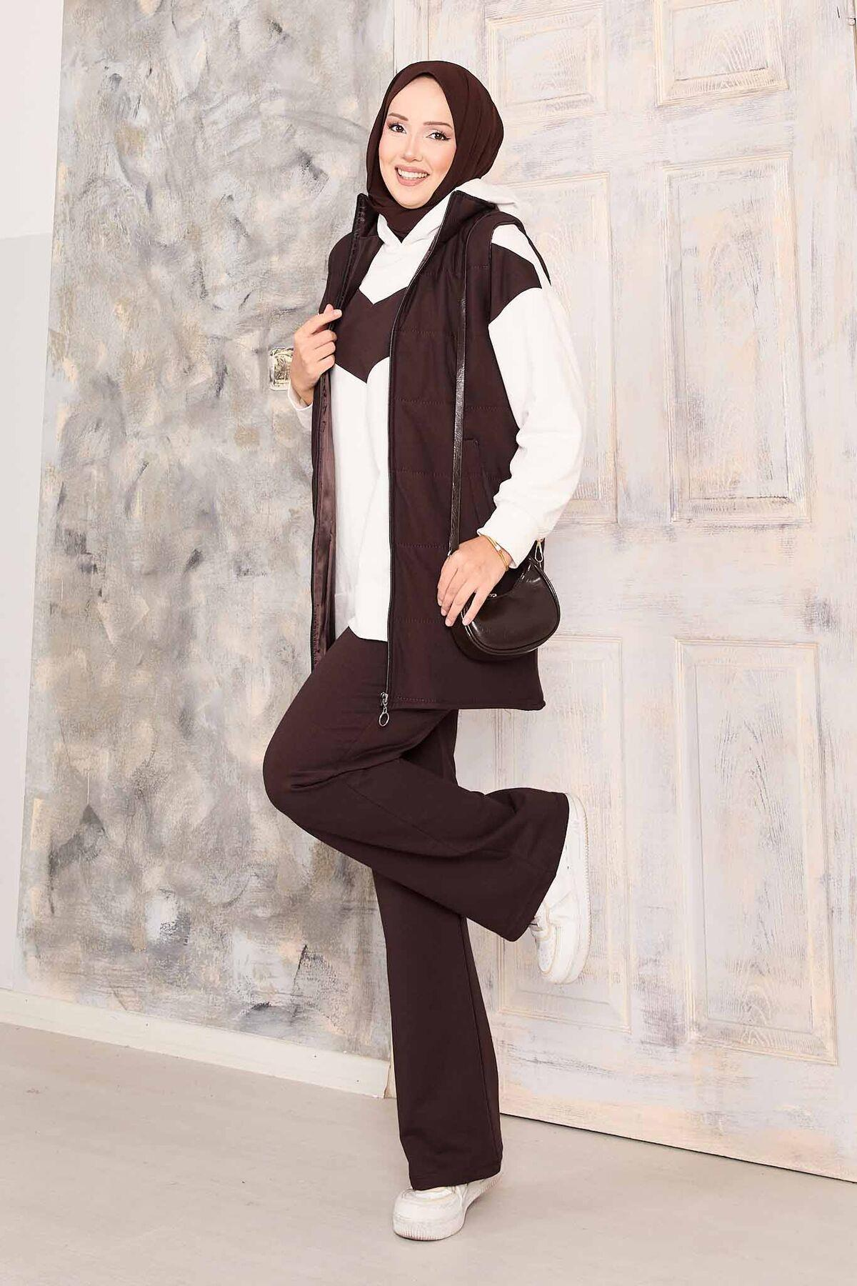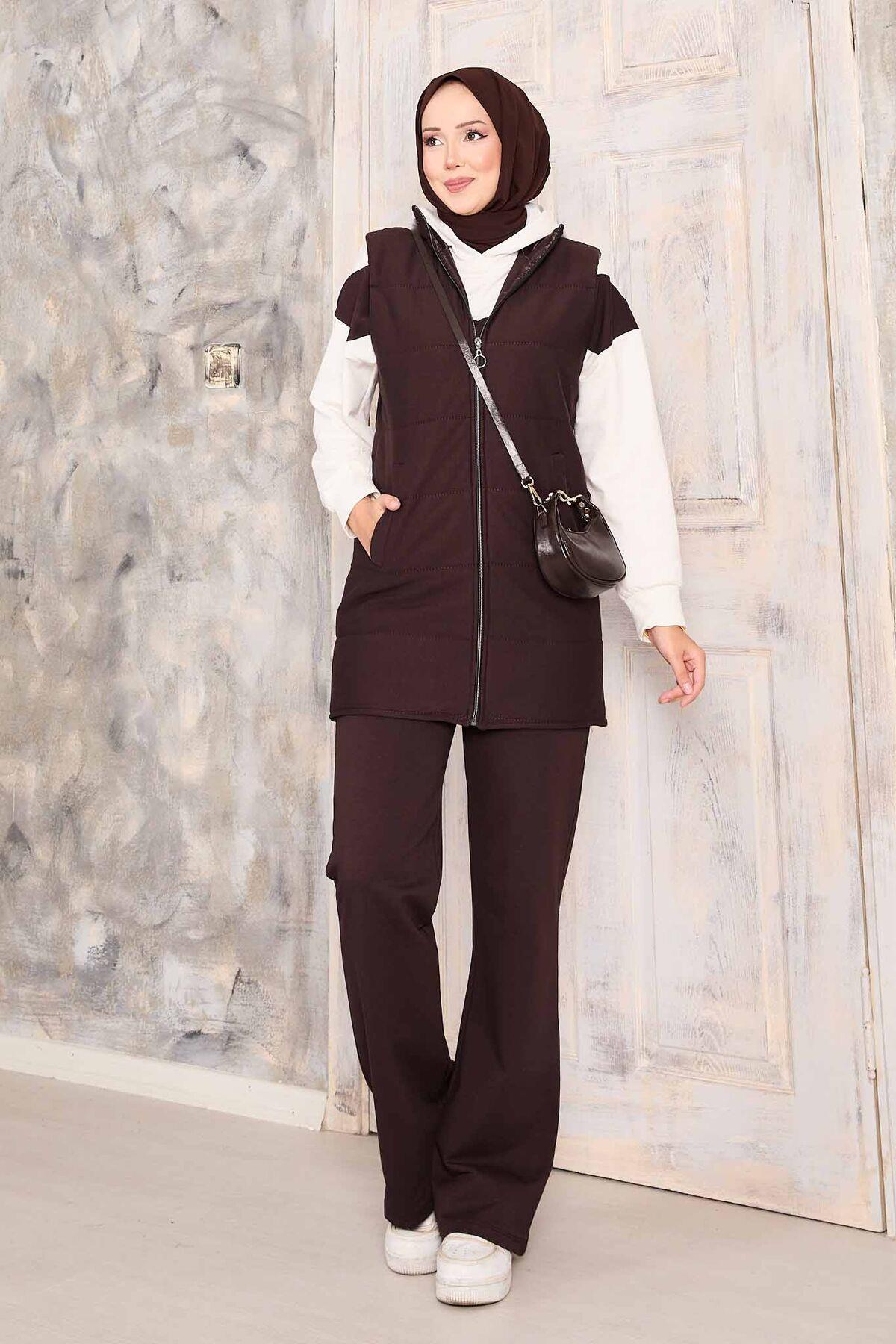 Yelek Sweat Pantolon Üçlü Takım Kahve (125M01727756R251)