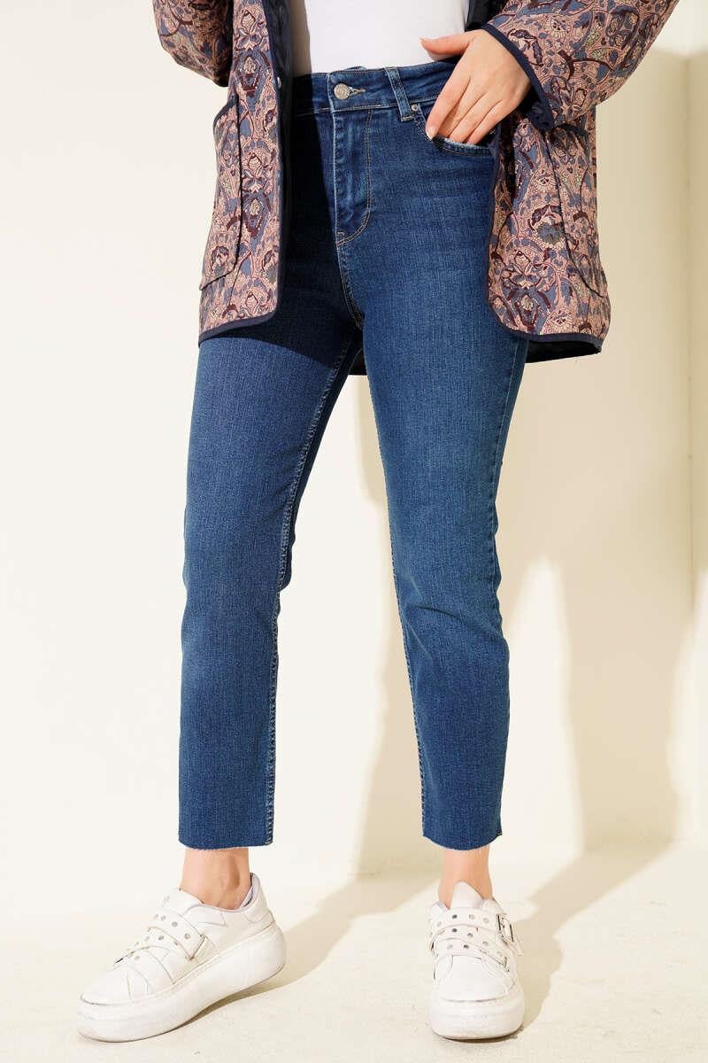 Yüksek Bel Boru Paça Kot Pantolon Mavi (0055-7558-680056)