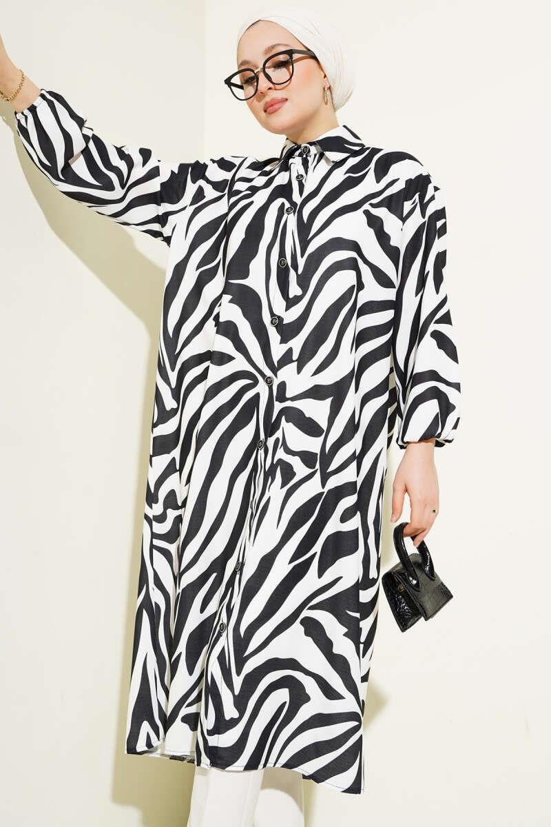 Zebra Desenli Uzun Gömlek Siyah (0428-1016-616868)