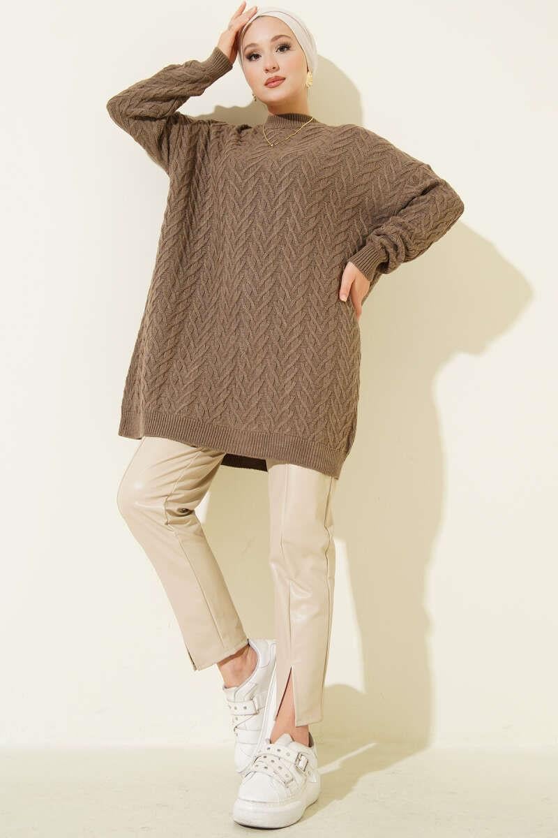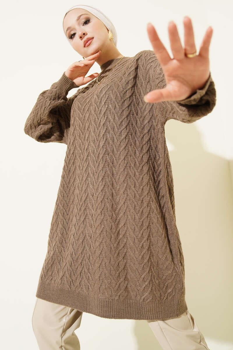 Zigzag Örgü Triko Tunik Vizon (0875-4116-675800)