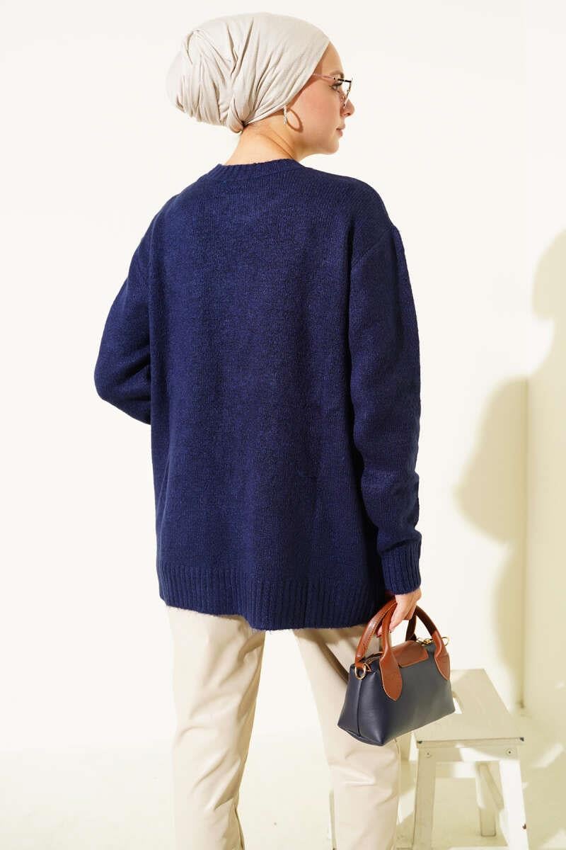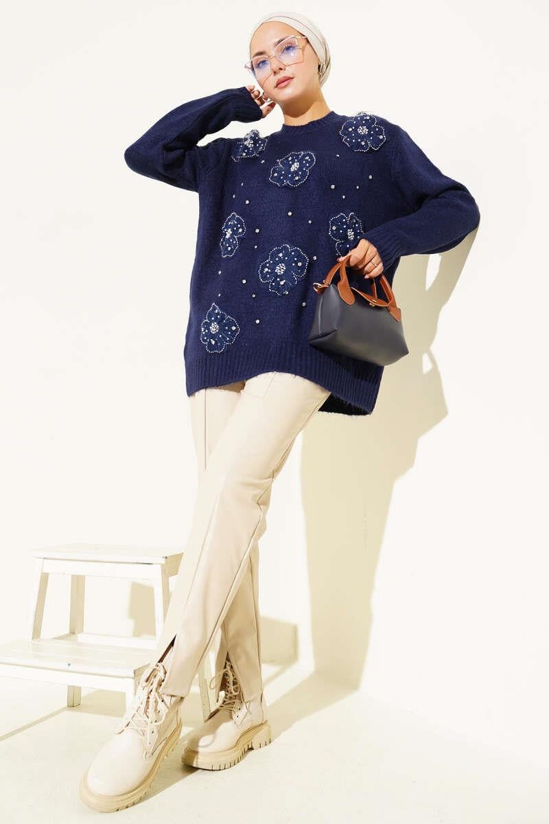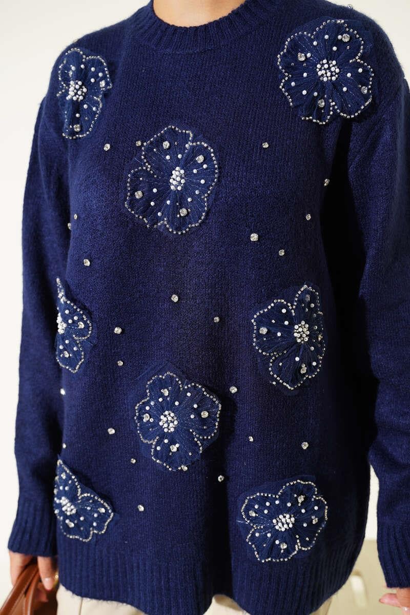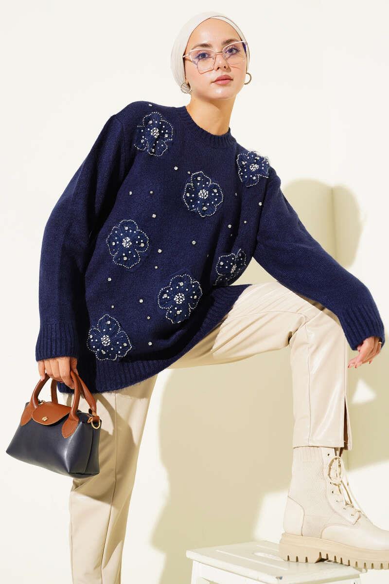 Tulle Floral Stoned Knit Tunic Navy Blue (0853-2628-673040)