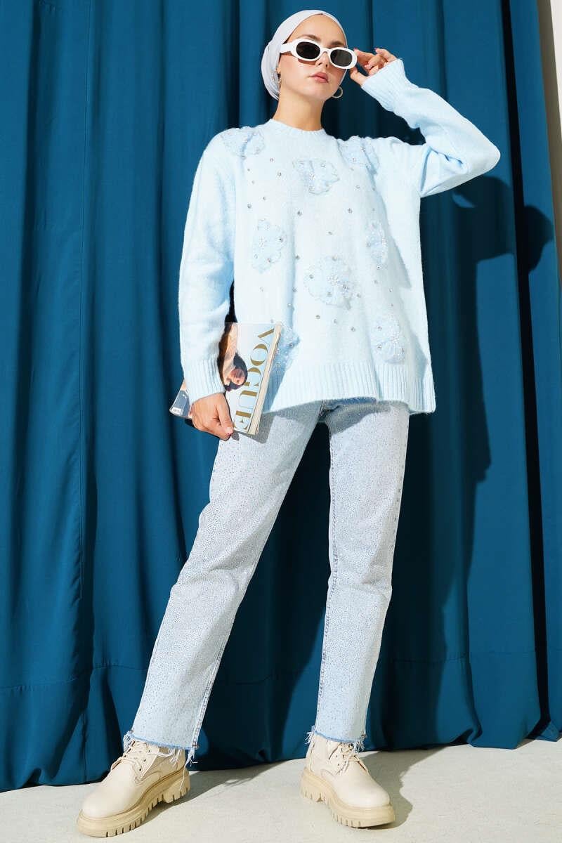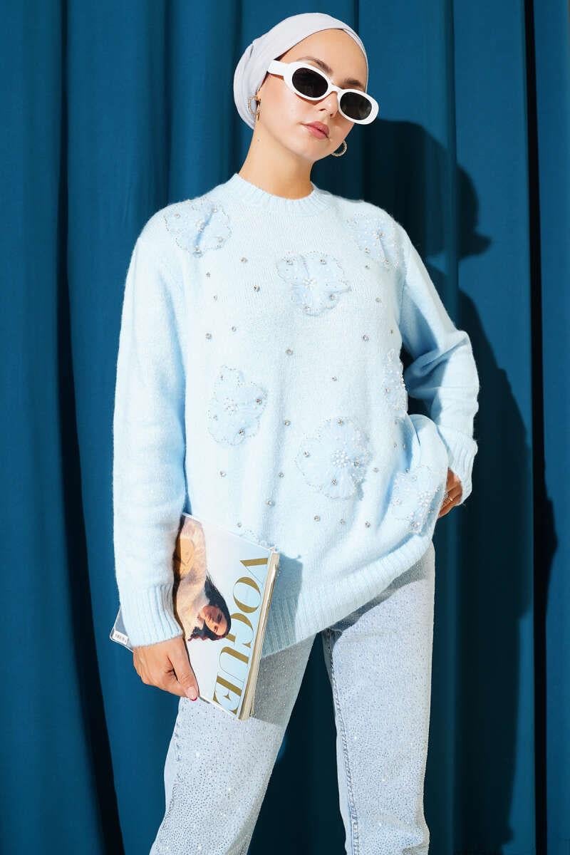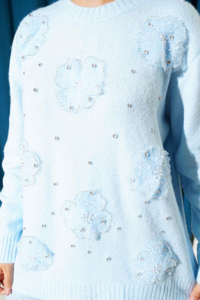 Tulle Floral Stoned Knit Tunic Blue (0853-2628-673041)