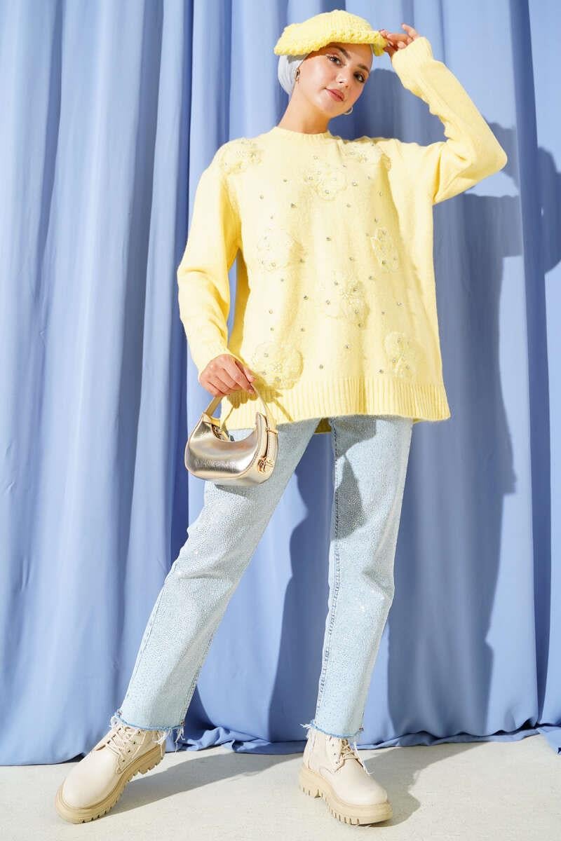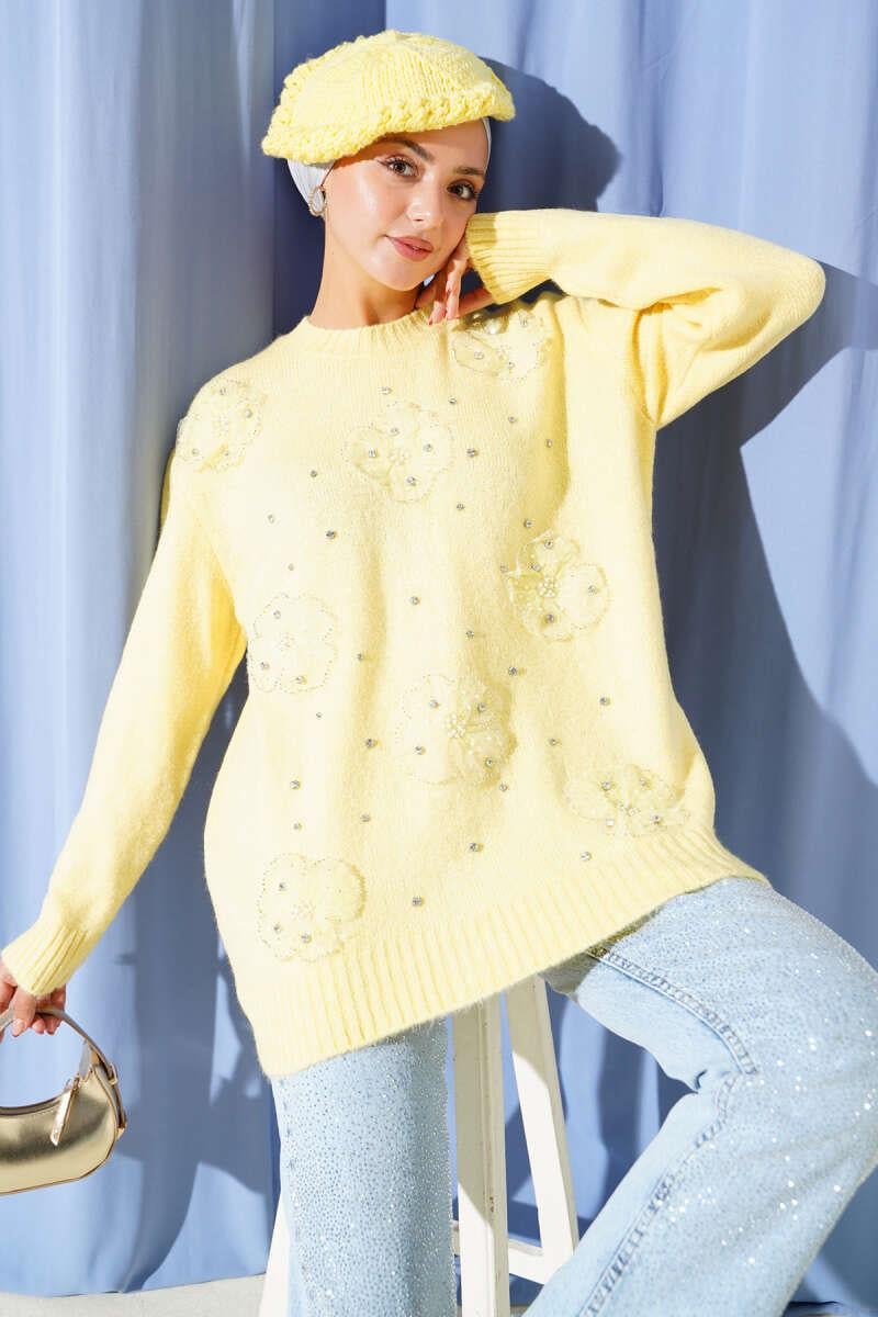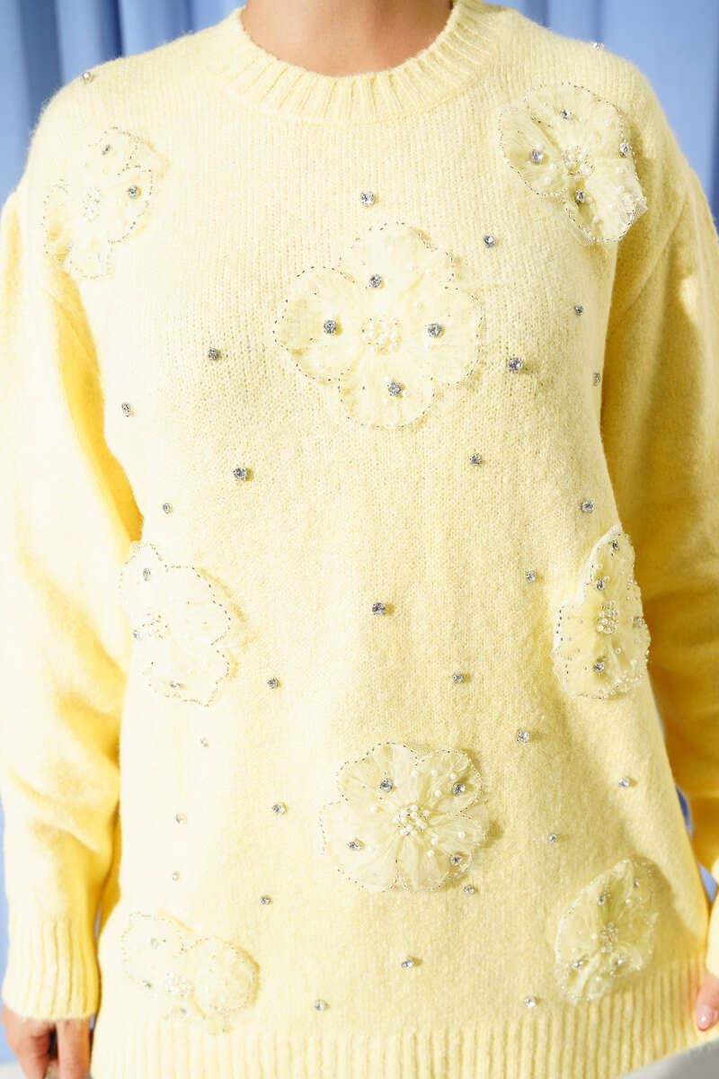 Tulle Floral Stoned Knit Tunic Yellow (0853-2628-673043)