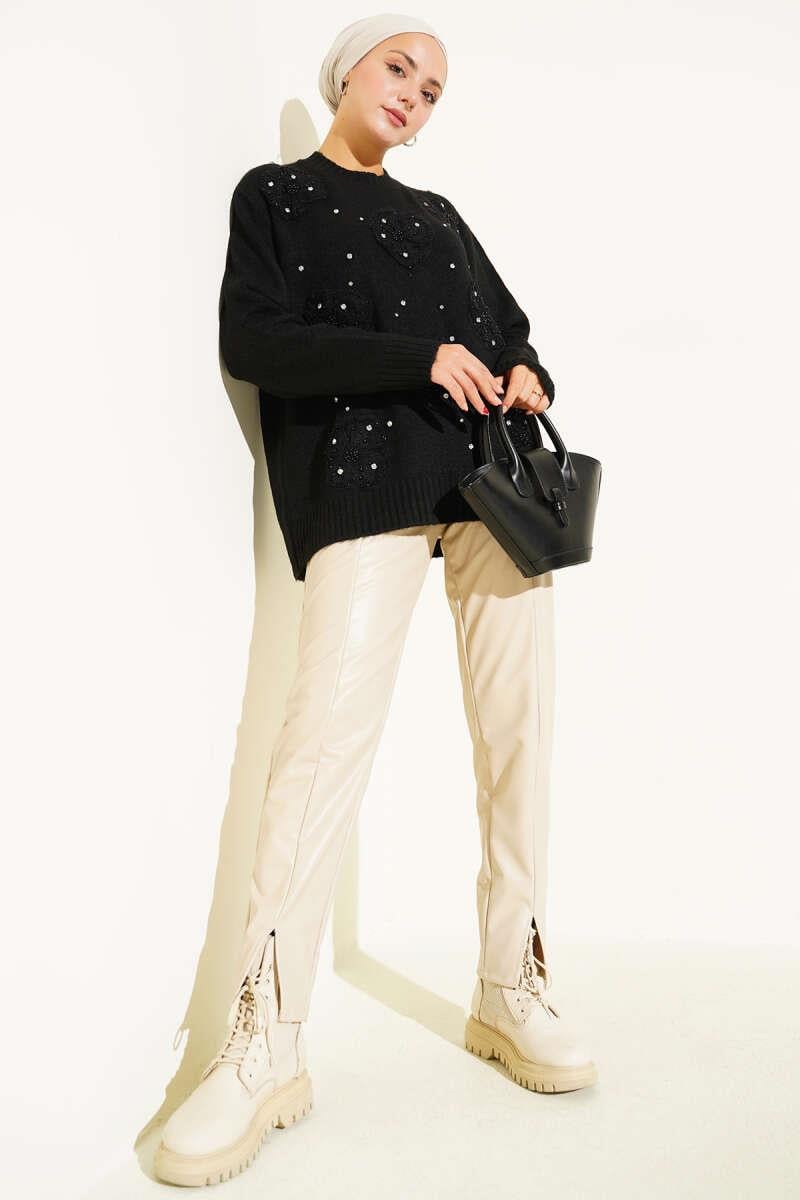 Tulle Floral Stoned Knit Tunic Black (0853-2628-673044)