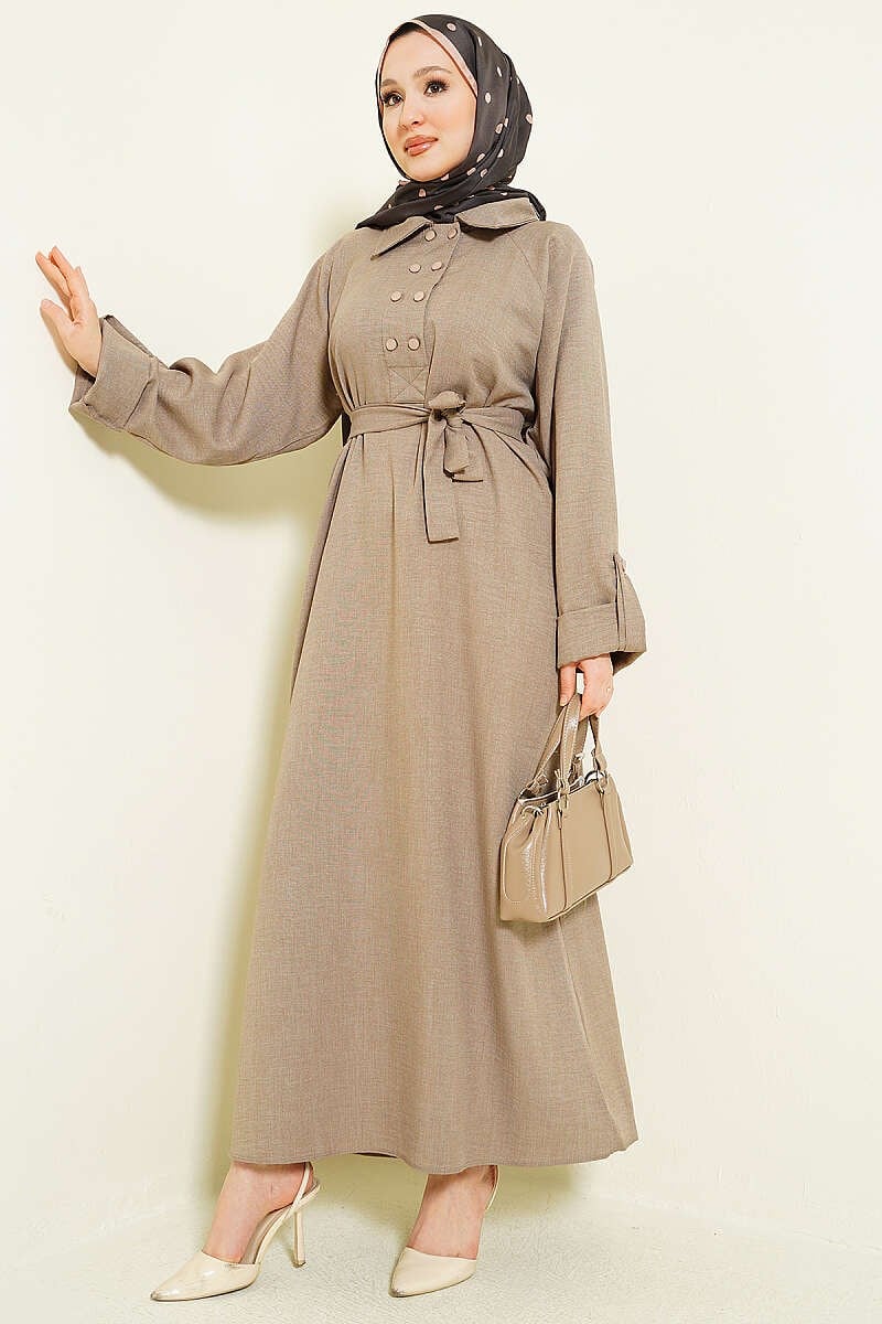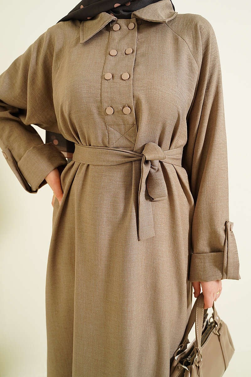 Double-Button Collar Dress, Mink (0853-3122-751190)