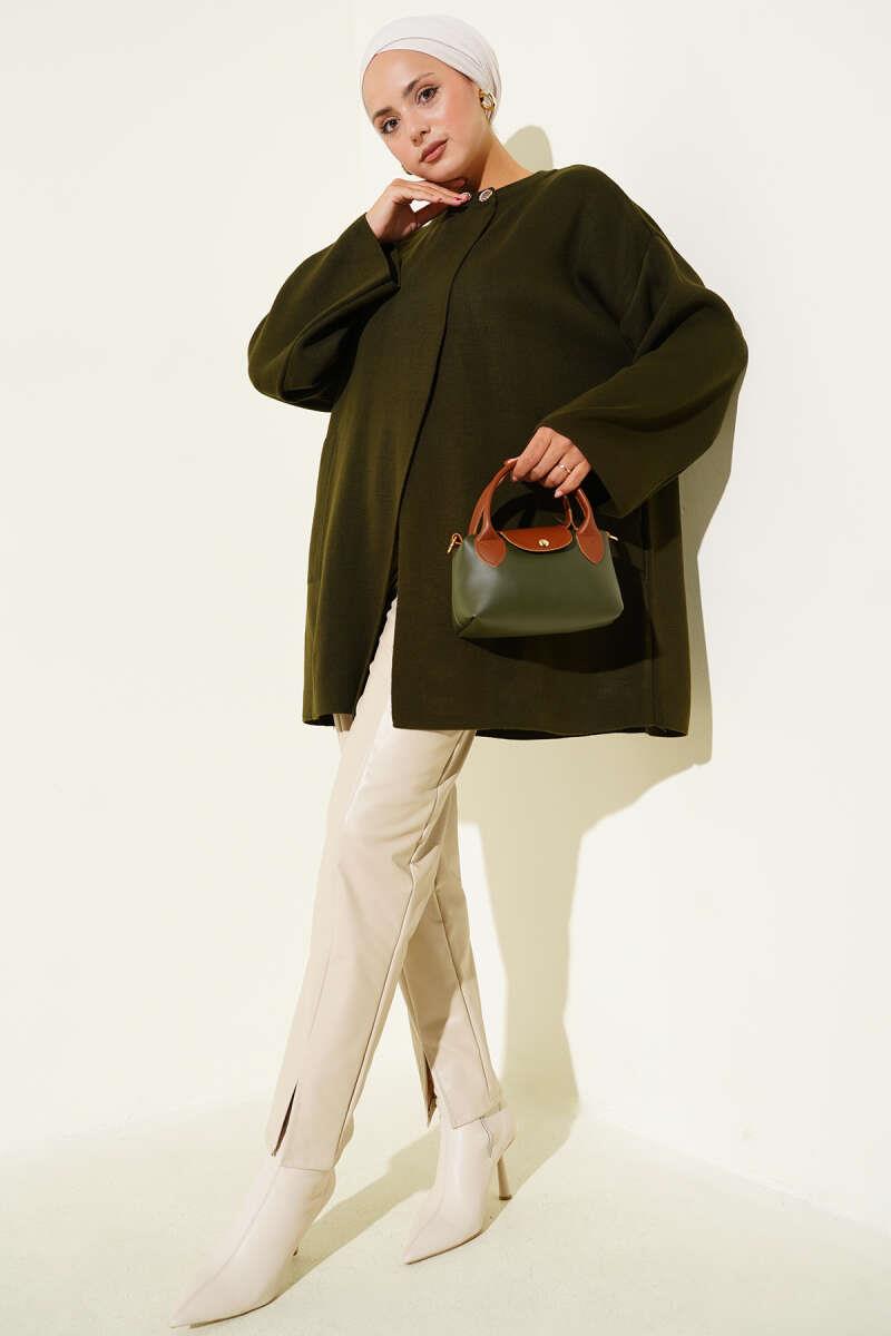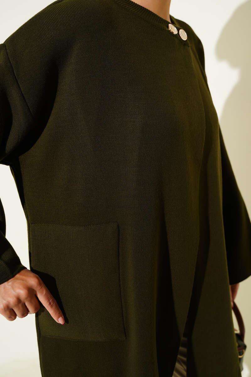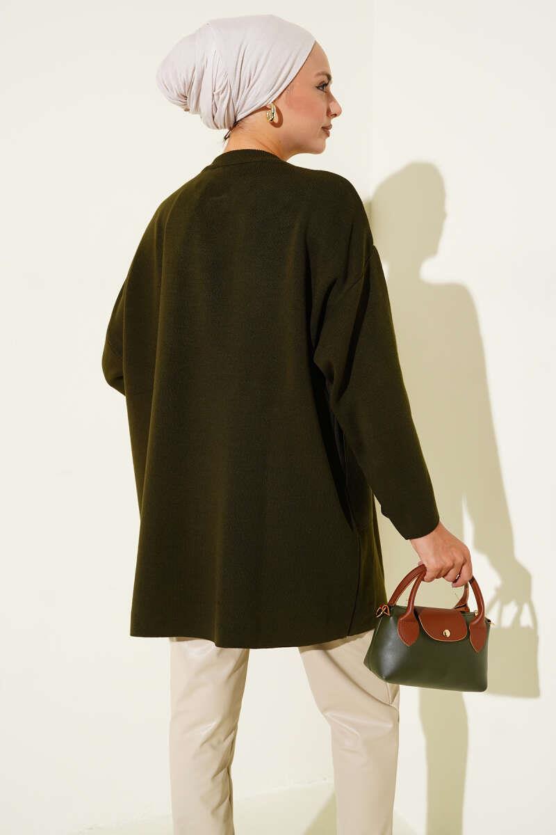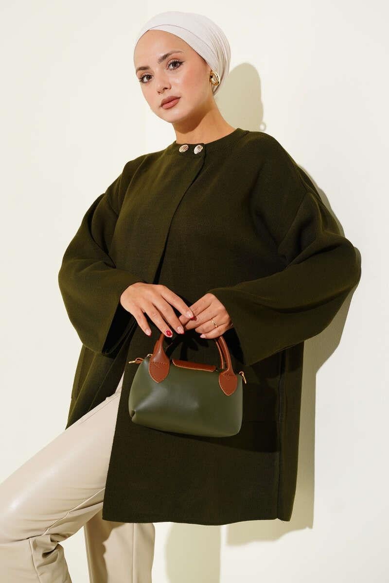Button-Down Collar Knitwear Poncho Khaki (8374-9753-672212)