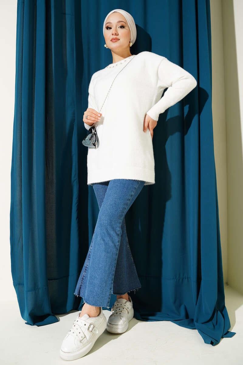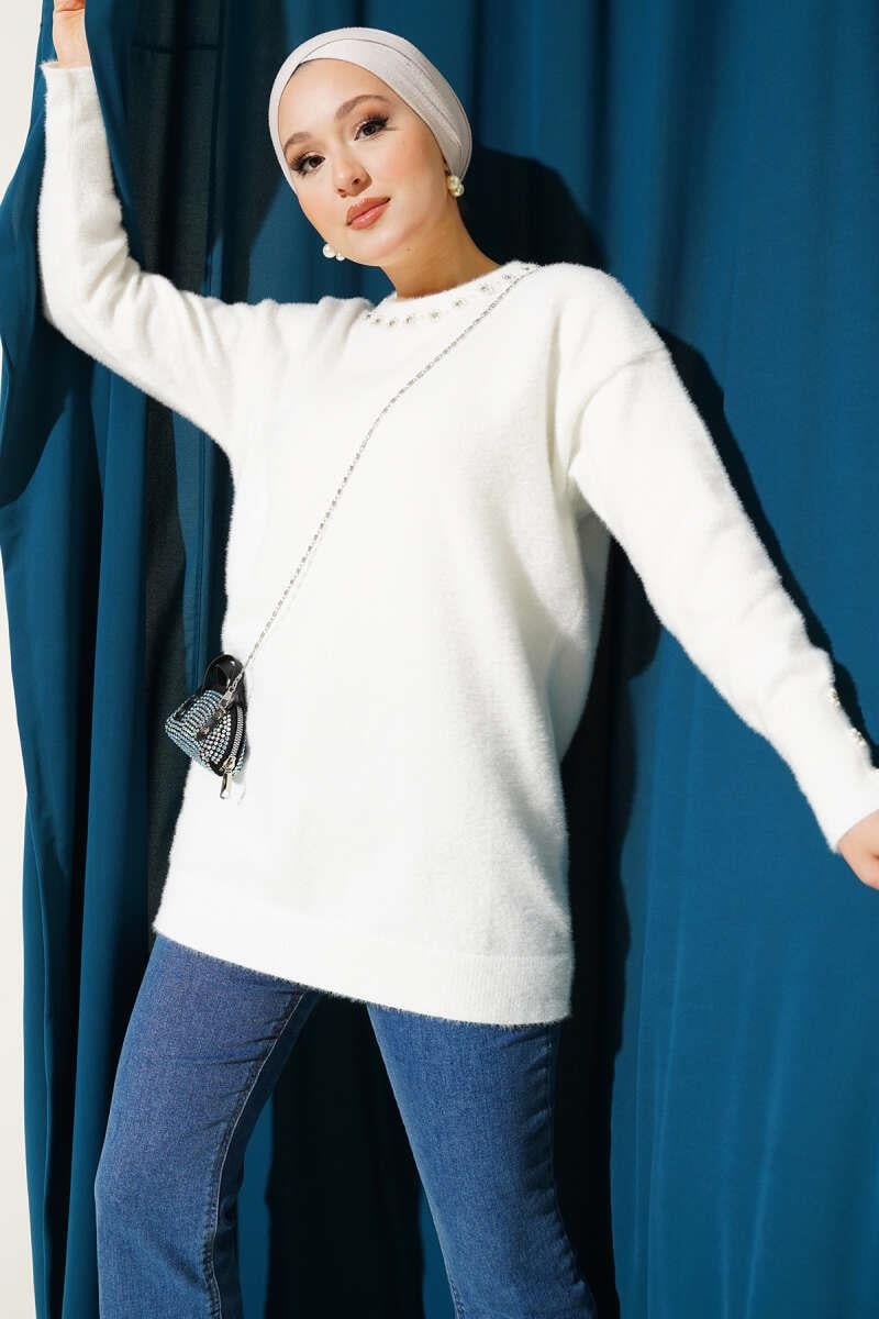 Pearl Collared Bearded Tunic in Ecru (8387-2500-679096)