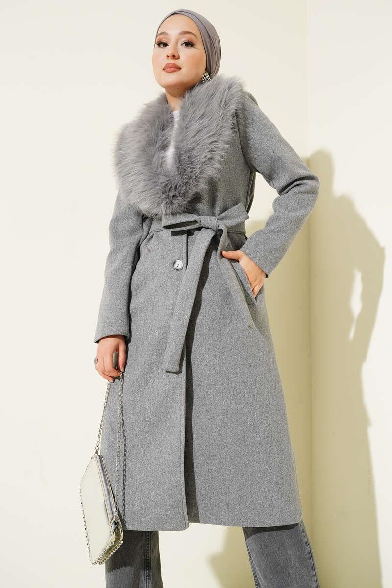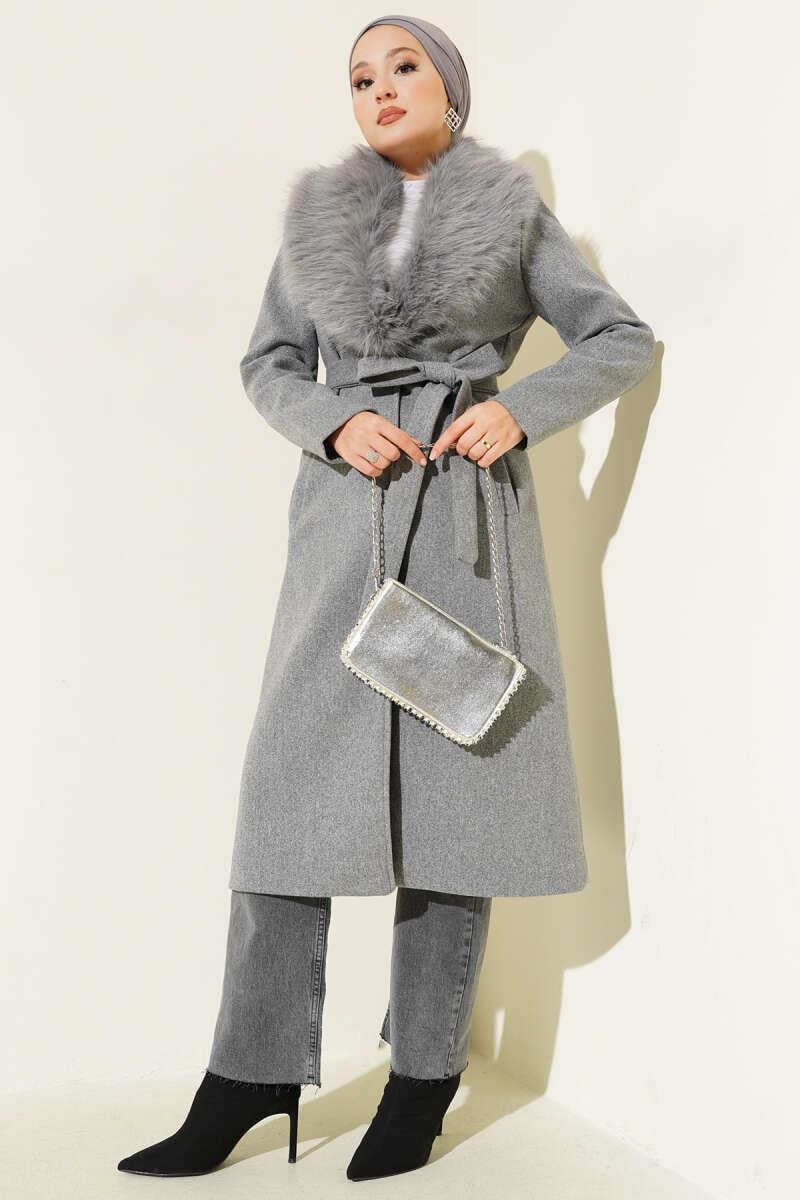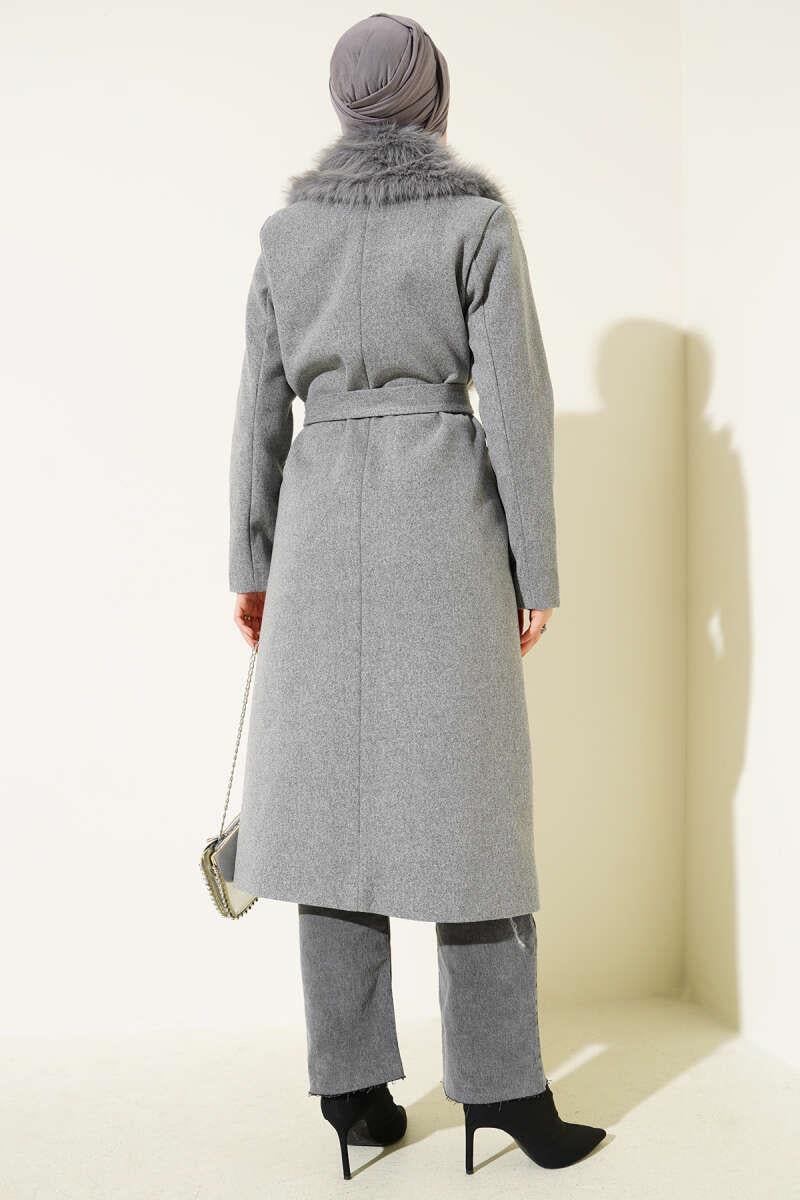 Fur Collar Detailed Cashmere Coat Gray (8900-25111-676067)