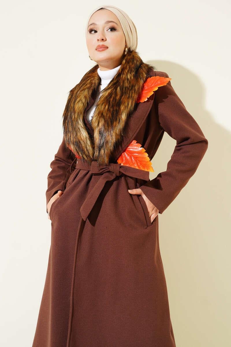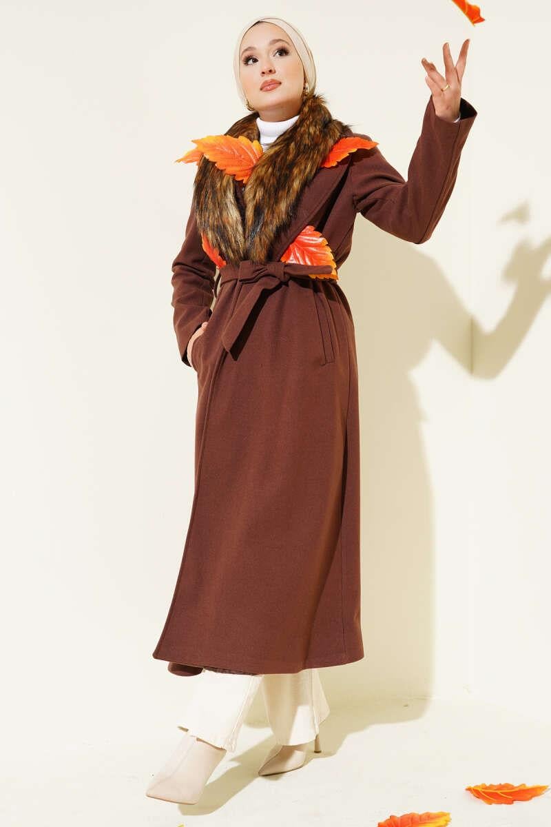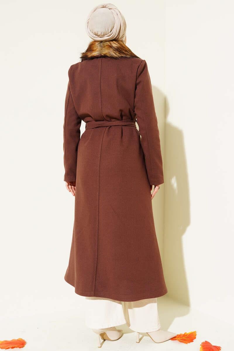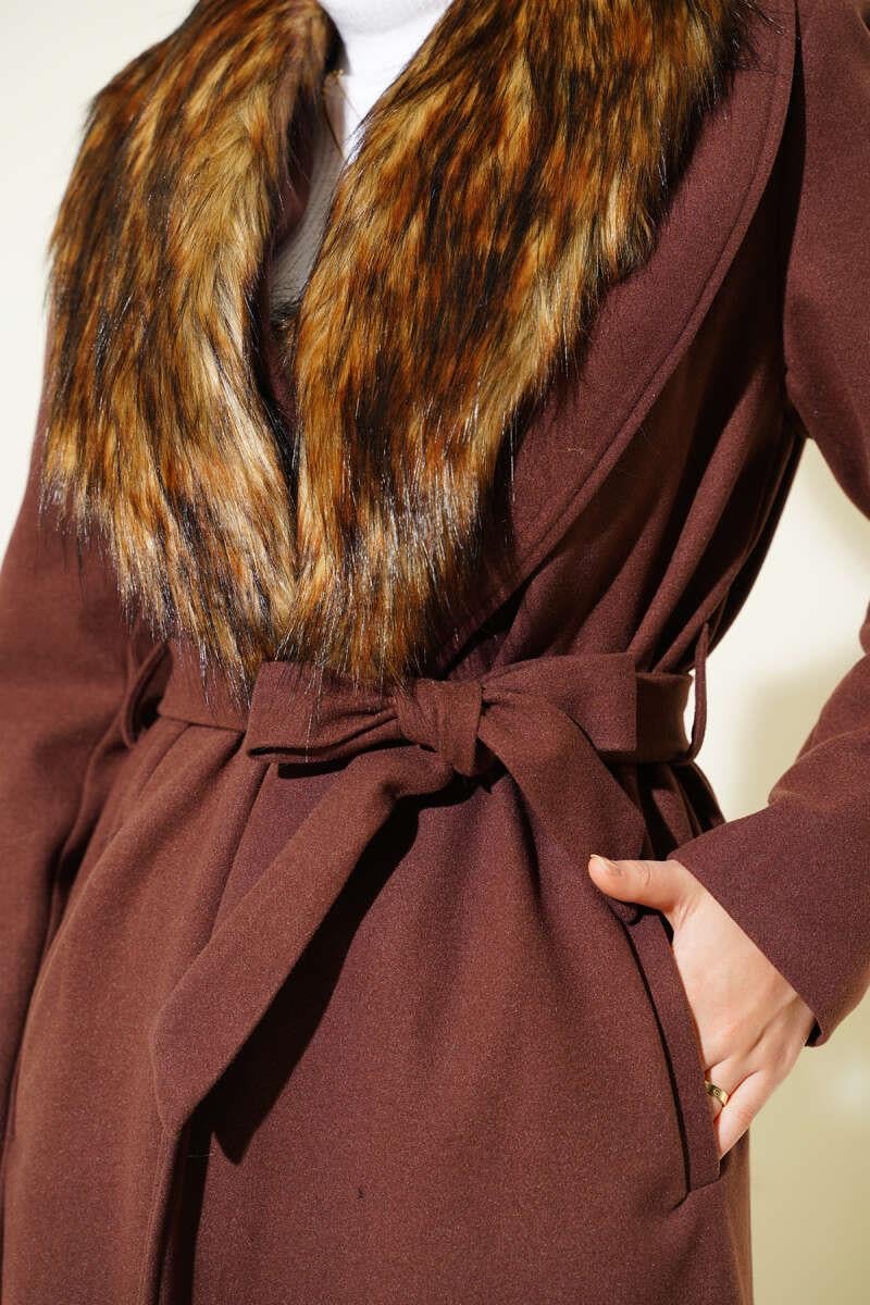 Fur Collar Belted Long Coat Brown (0999-5603-678091)