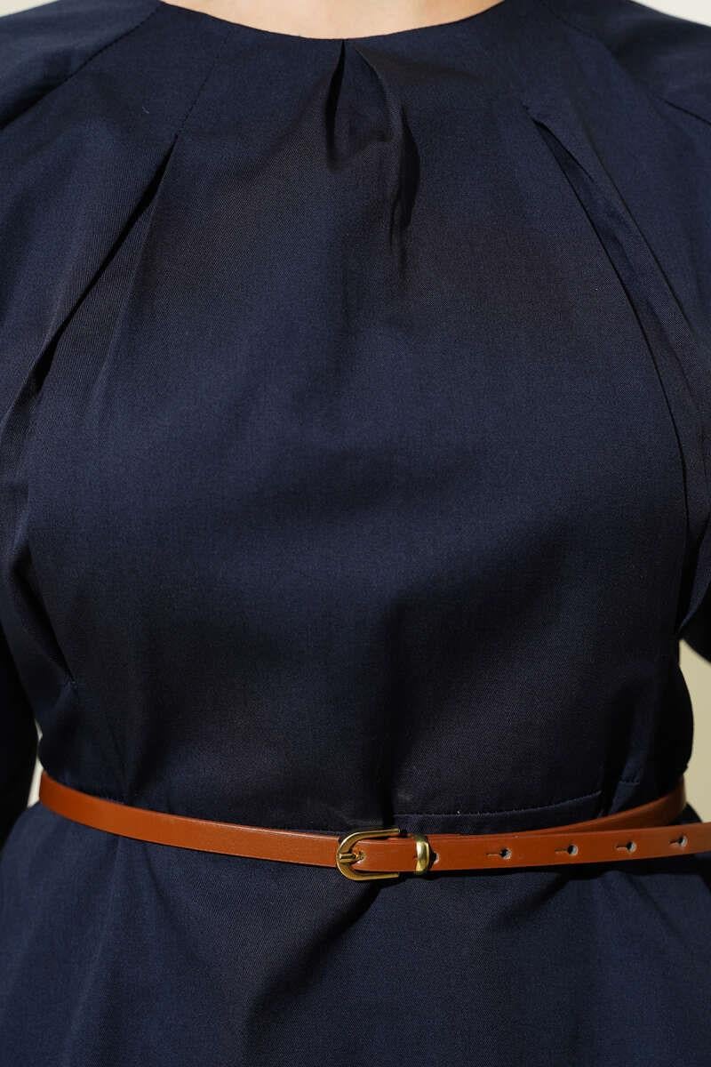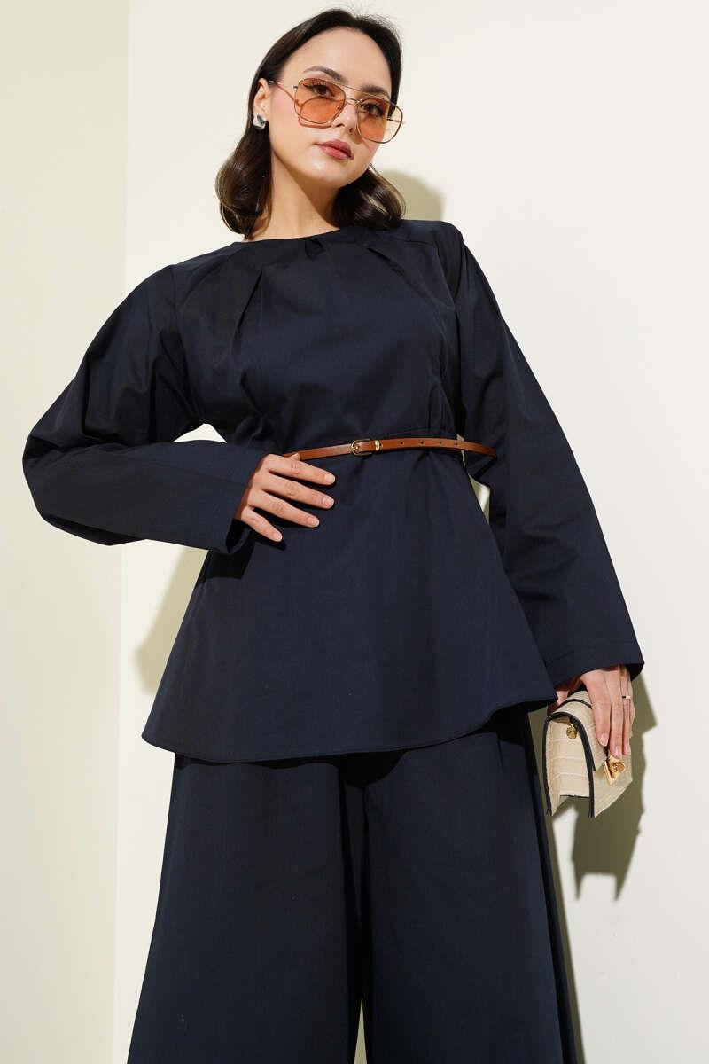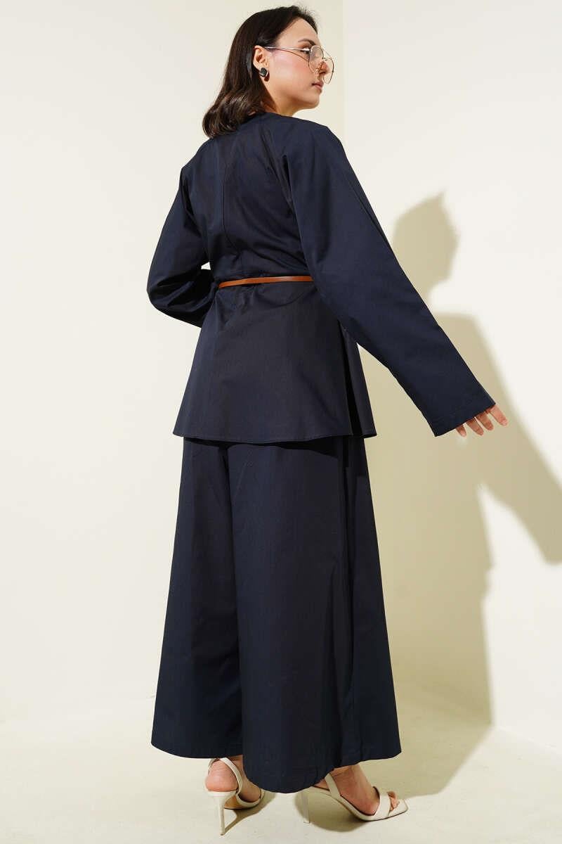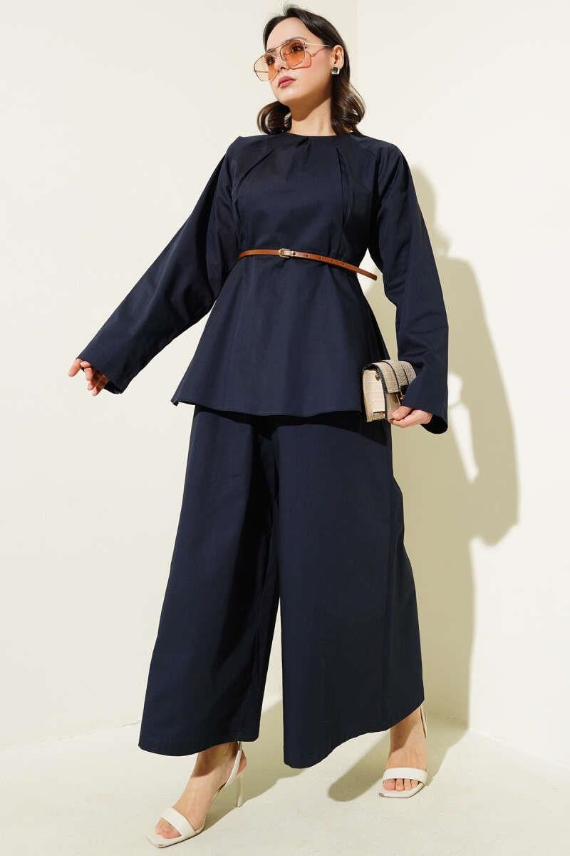 Darted Collar Belted Poplin 2 Piece Set Navy Blue (0631-3104-607156)