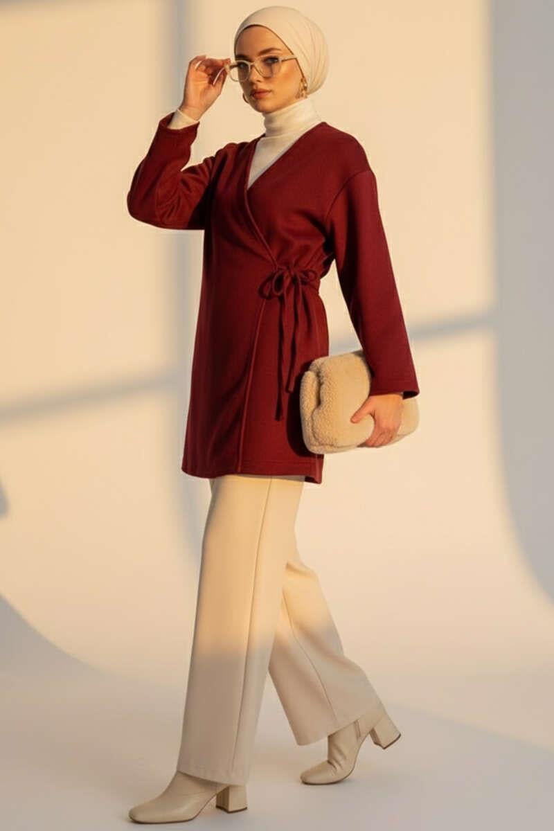 Side Tie Cashmere Jacket Burgundy (0999-6426-678946)