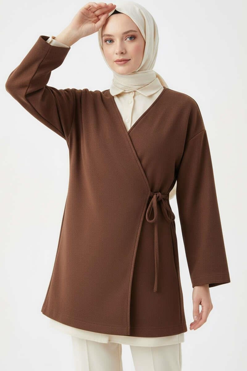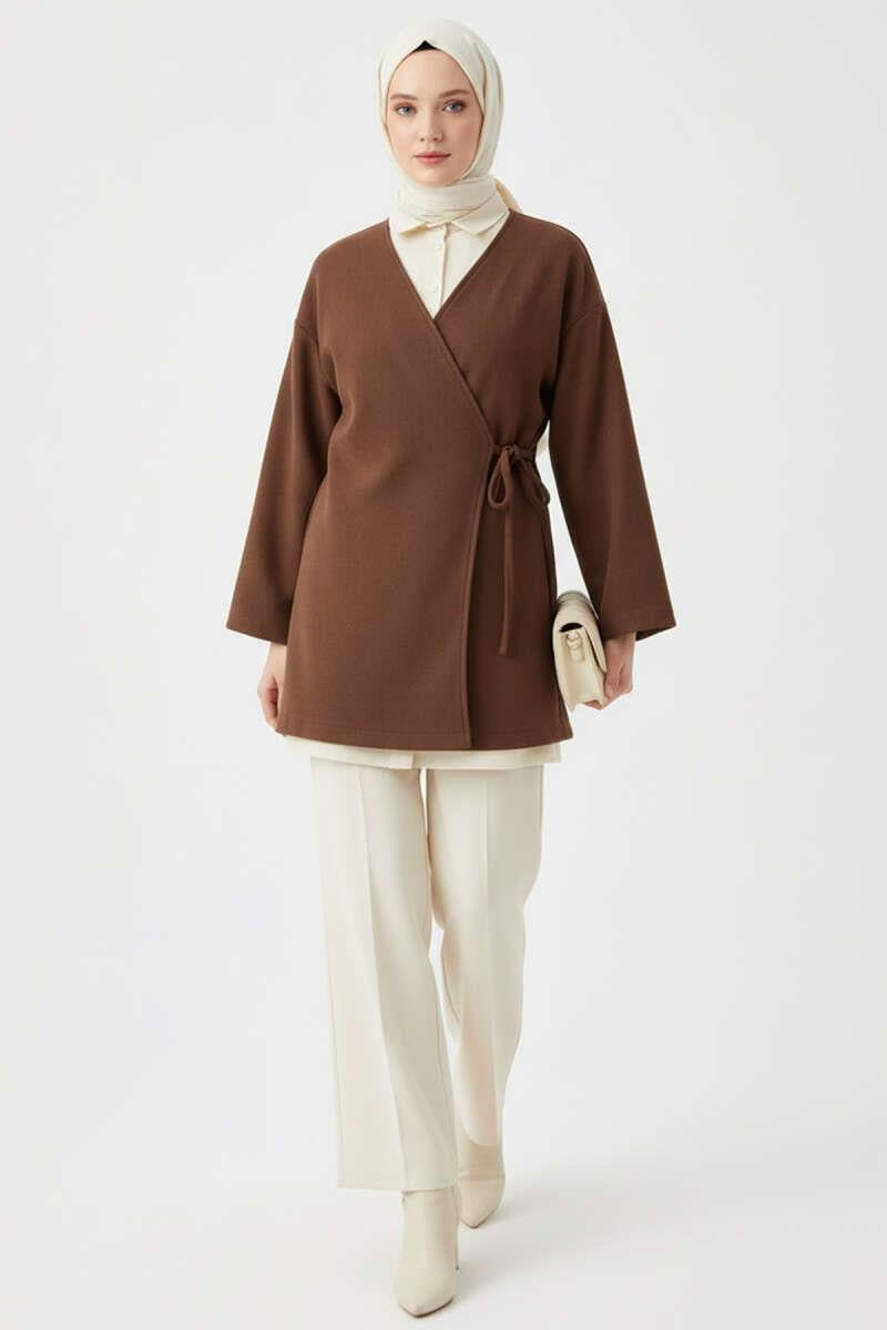 Side Tie Cashmere Jacket Brown (0999-6426-678956)