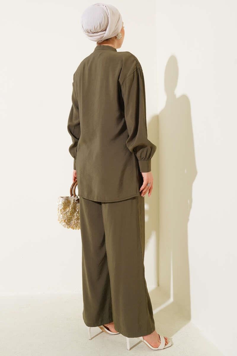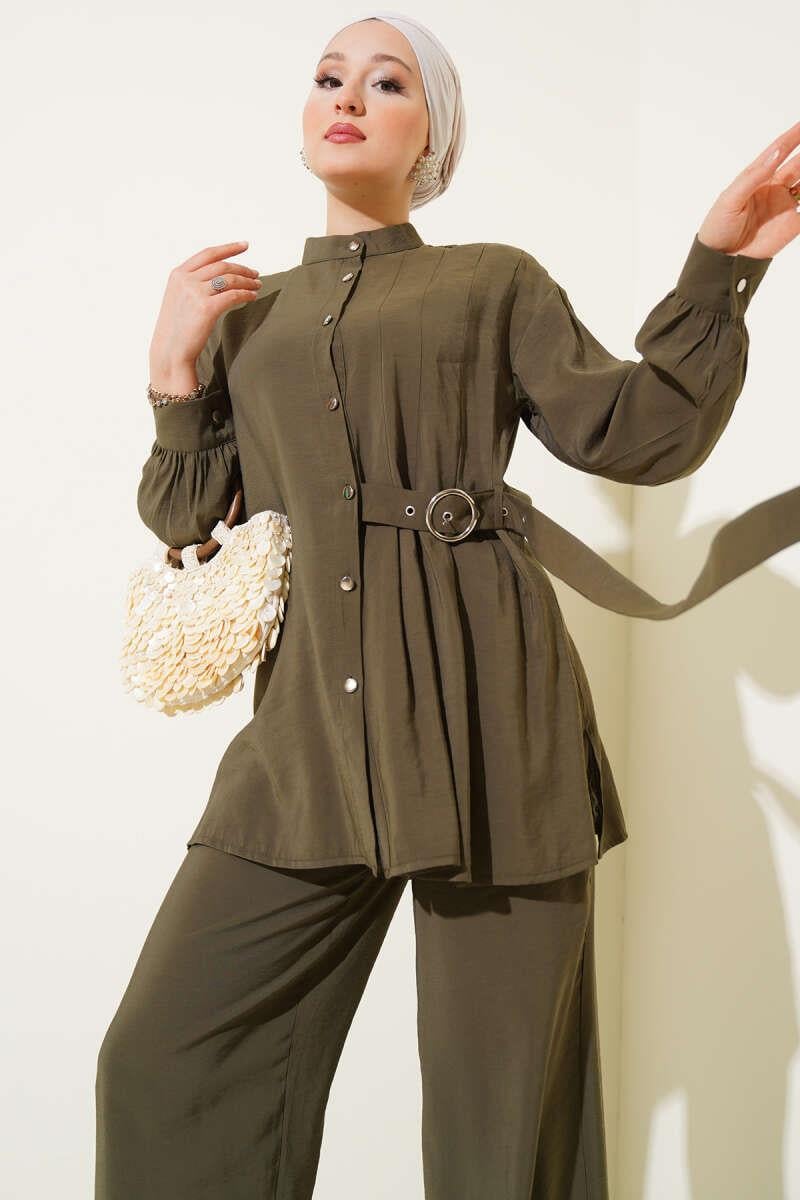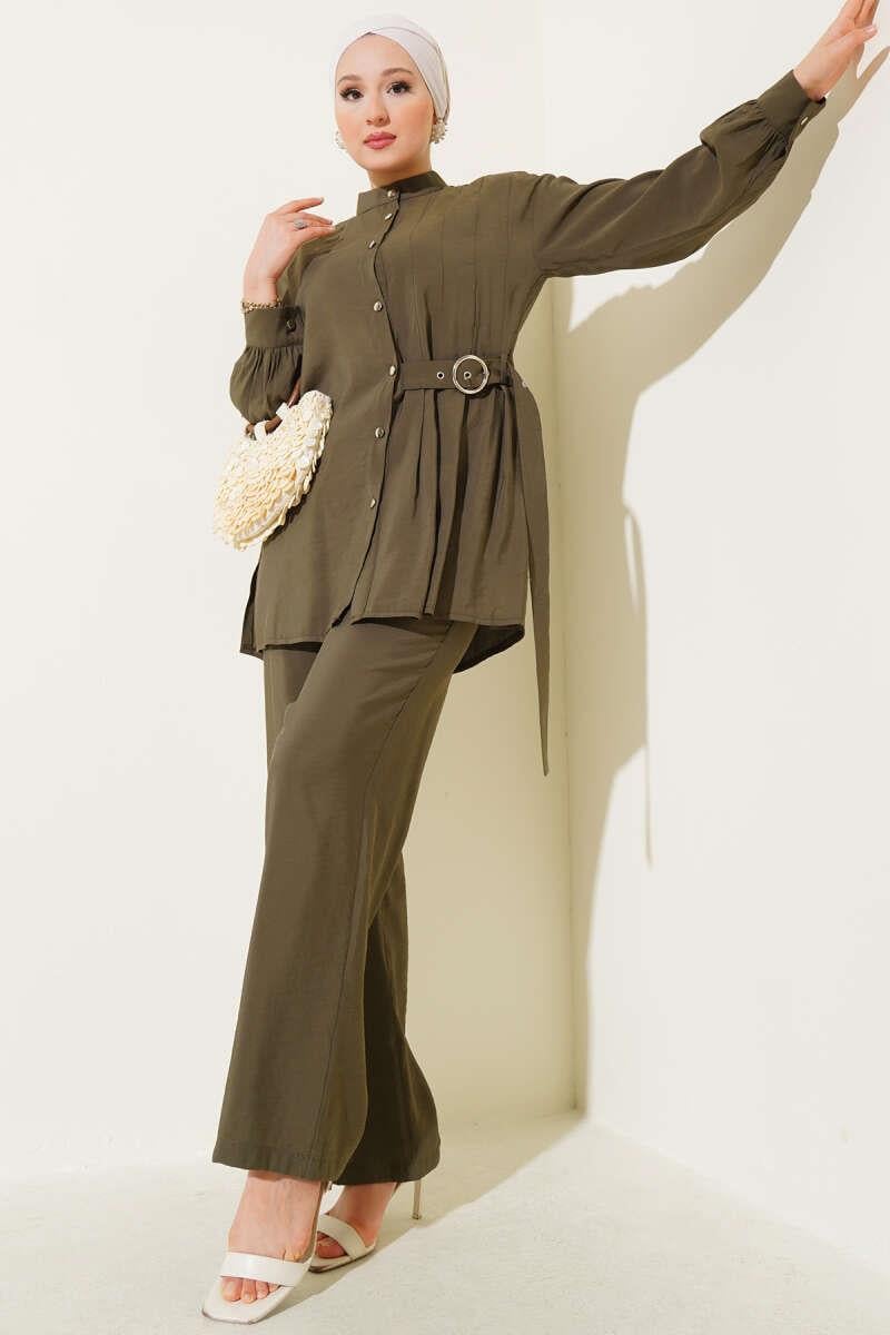 Side Belt Buttoned 2 Piece Set Khaki (0999-6292-655414)