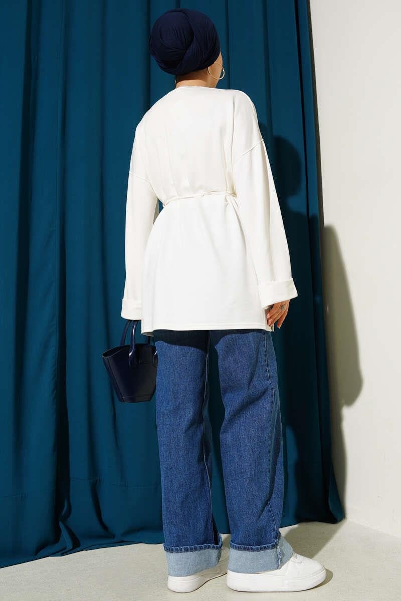 Side Slit Double Sleeve Tunic Ecru (0997-2405-683229)