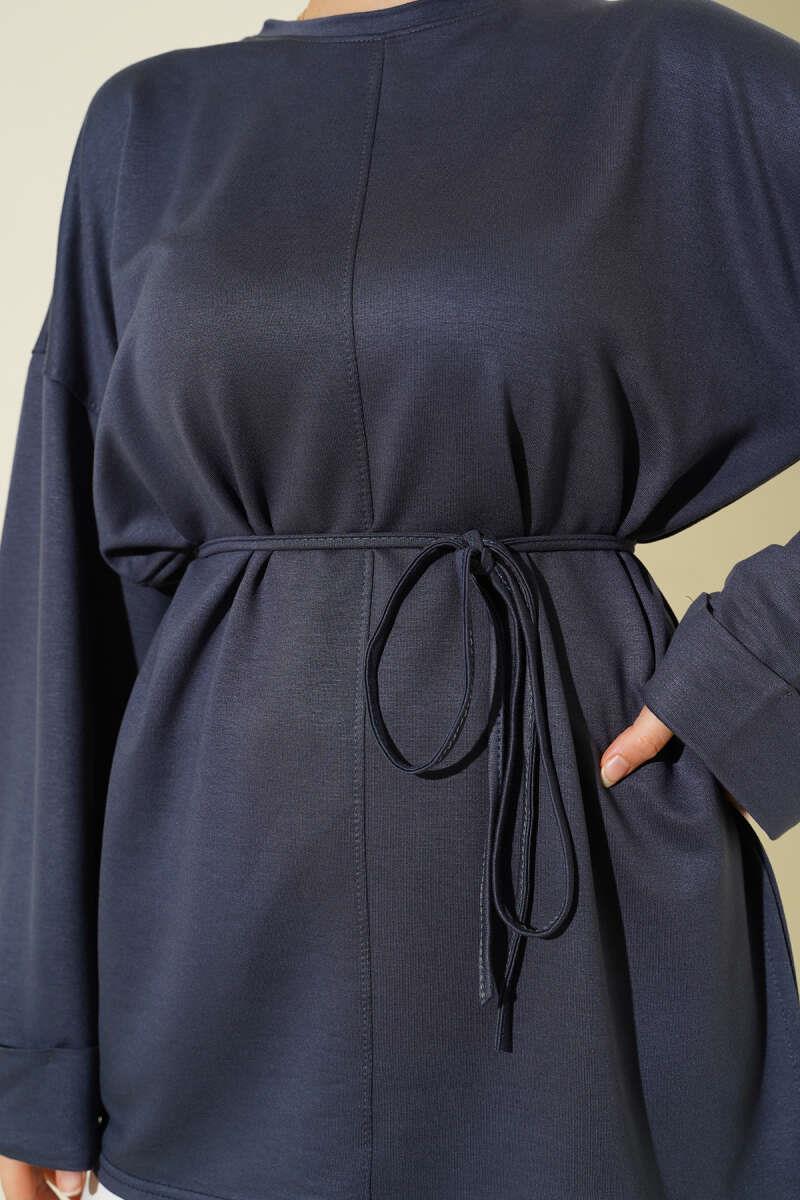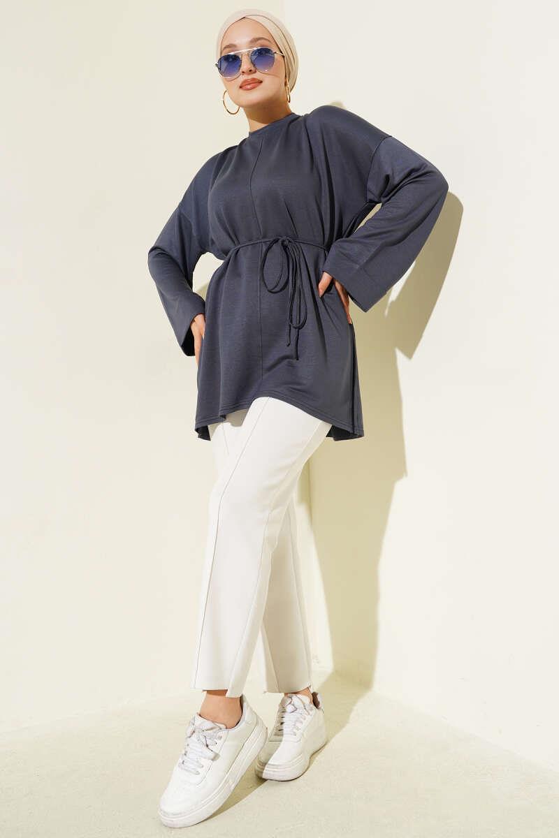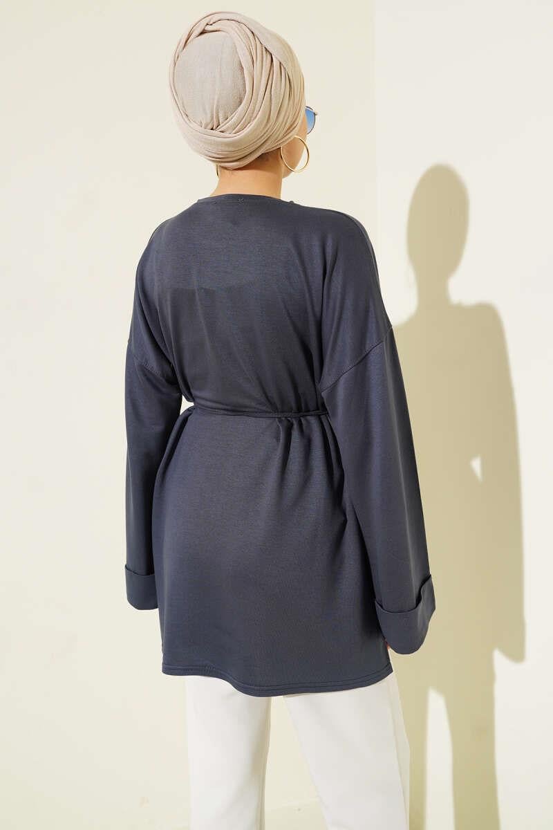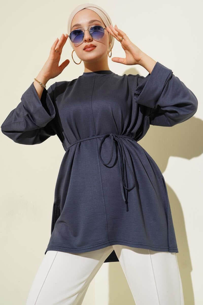 Side Slit Double Sleeve Tunic Smoke (0997-2405-683231)