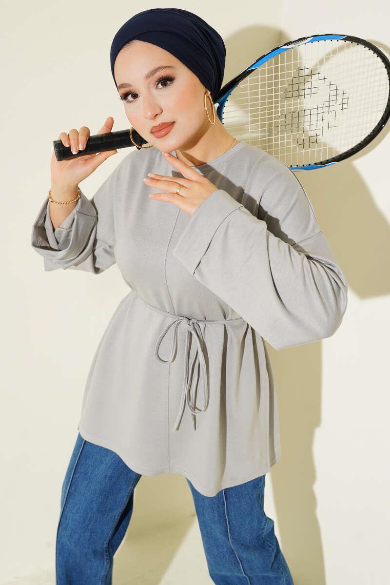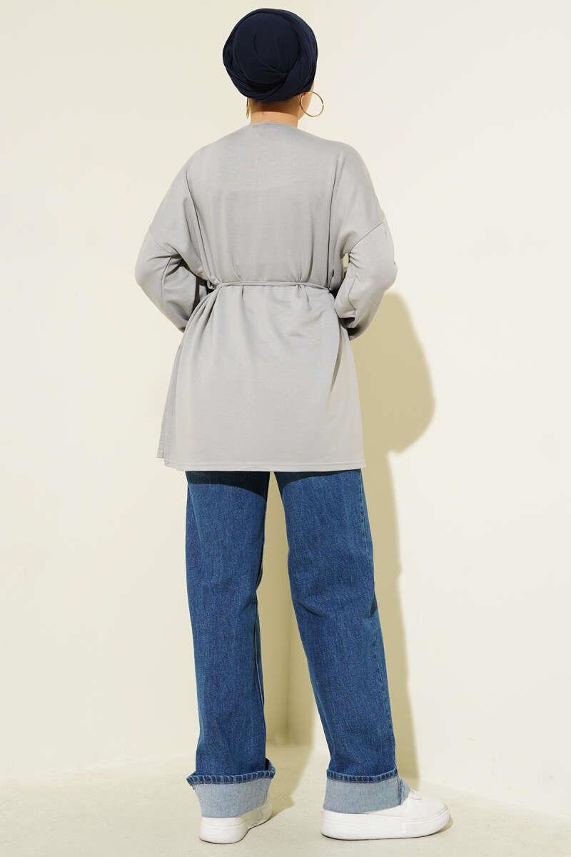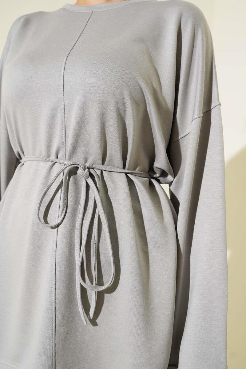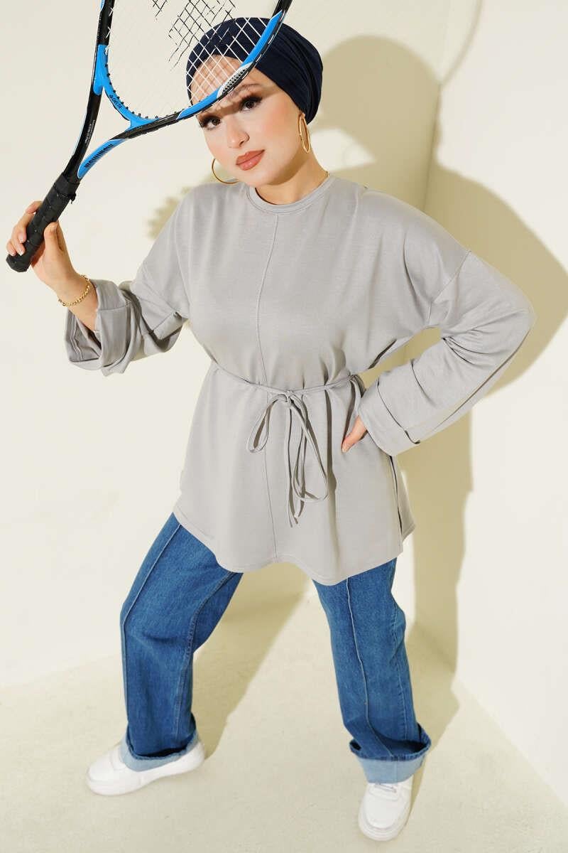 Side Slit Double Sleeve Tunic Gray (0997-2405-683235)