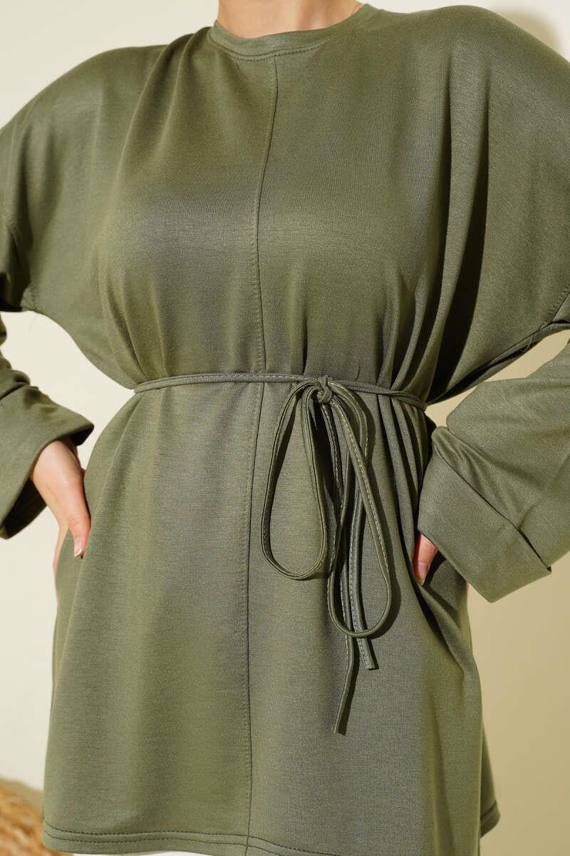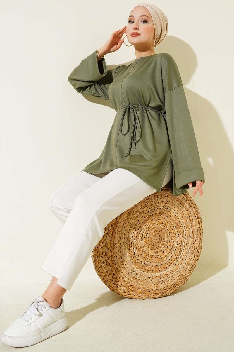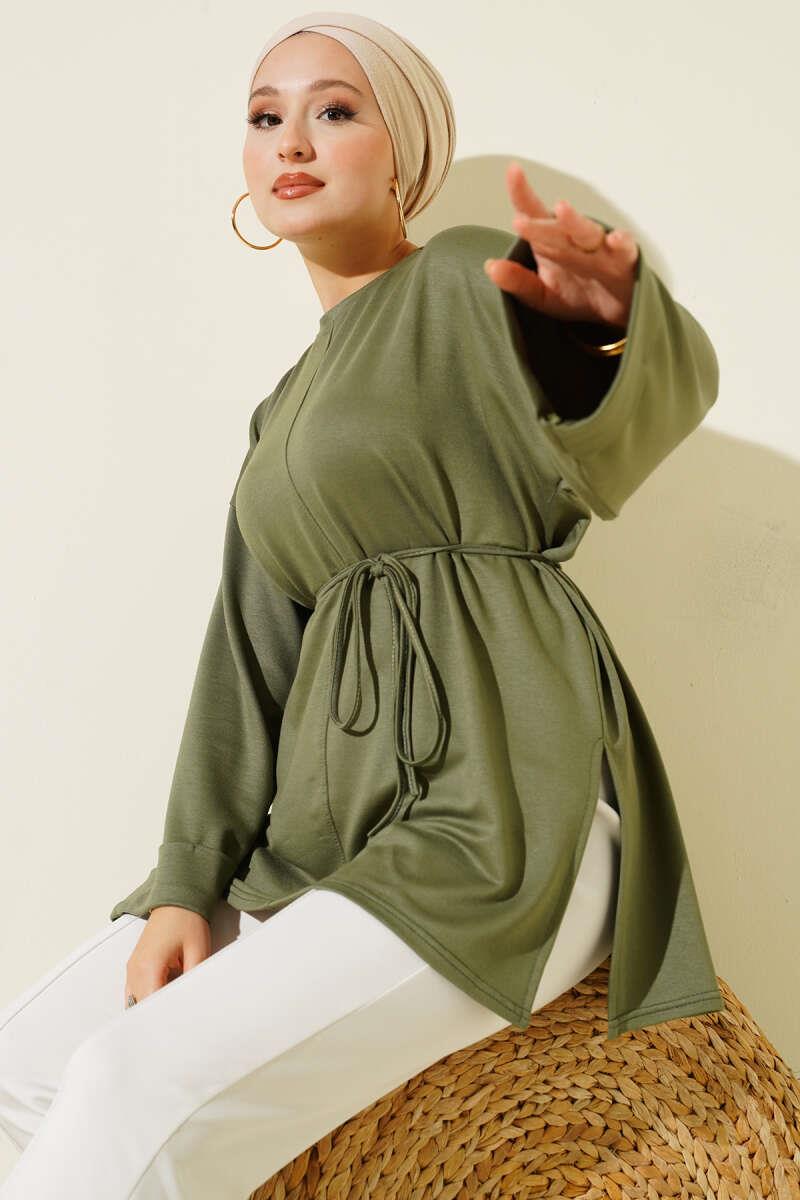 Side Slit Double Sleeve Tunic Khaki (0997-2405-683239)