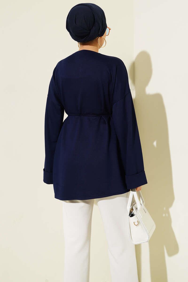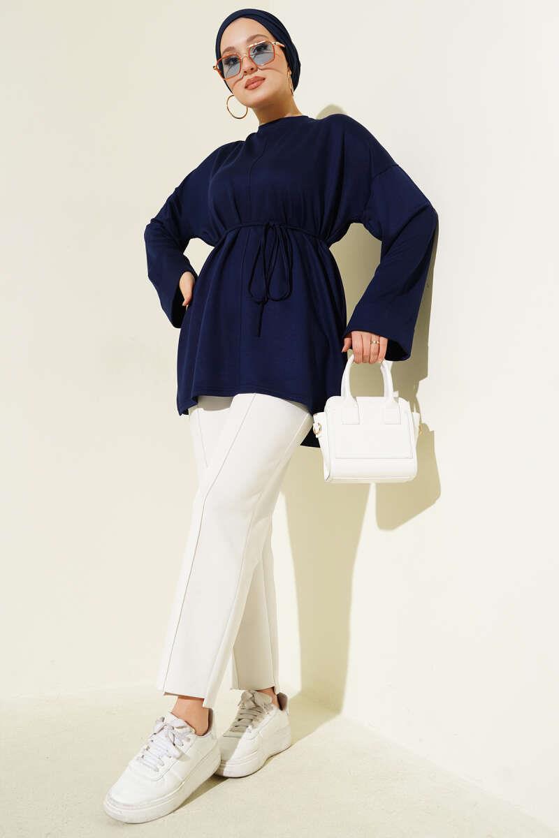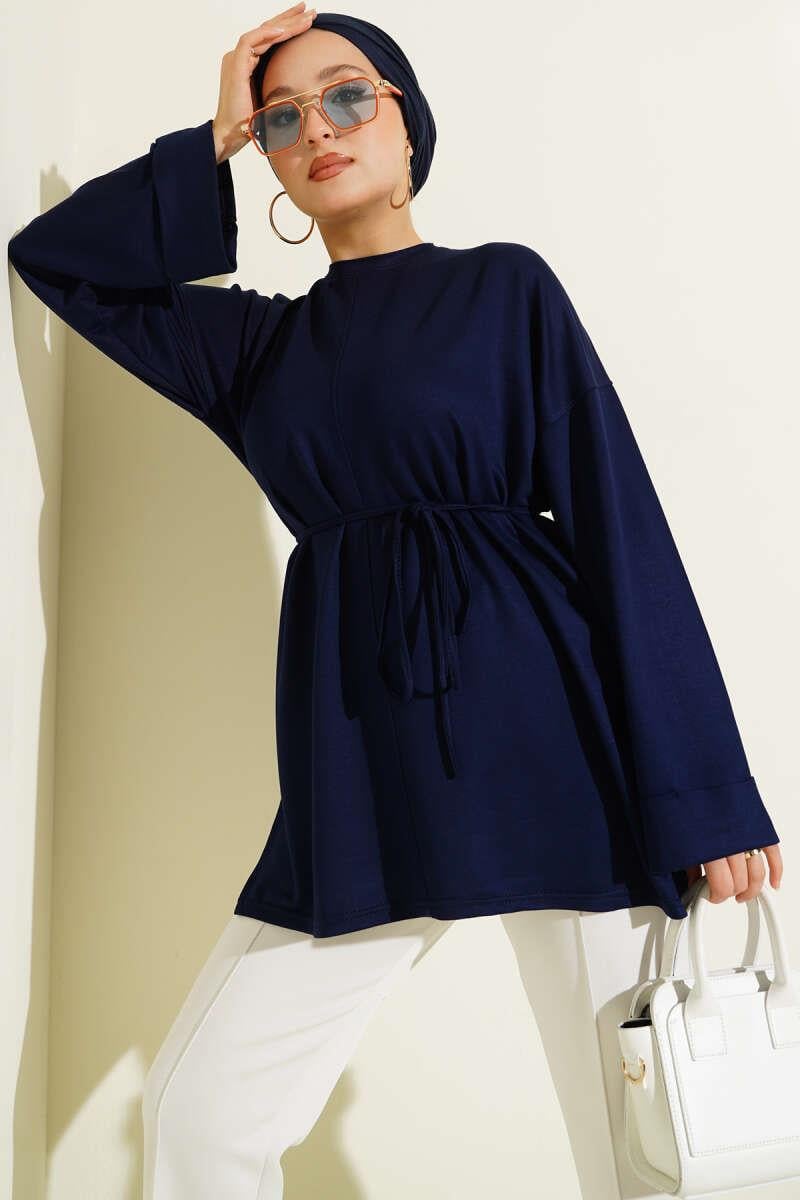 Side Slit Double Sleeve Tunic Navy Blue (0997-2405-683247)