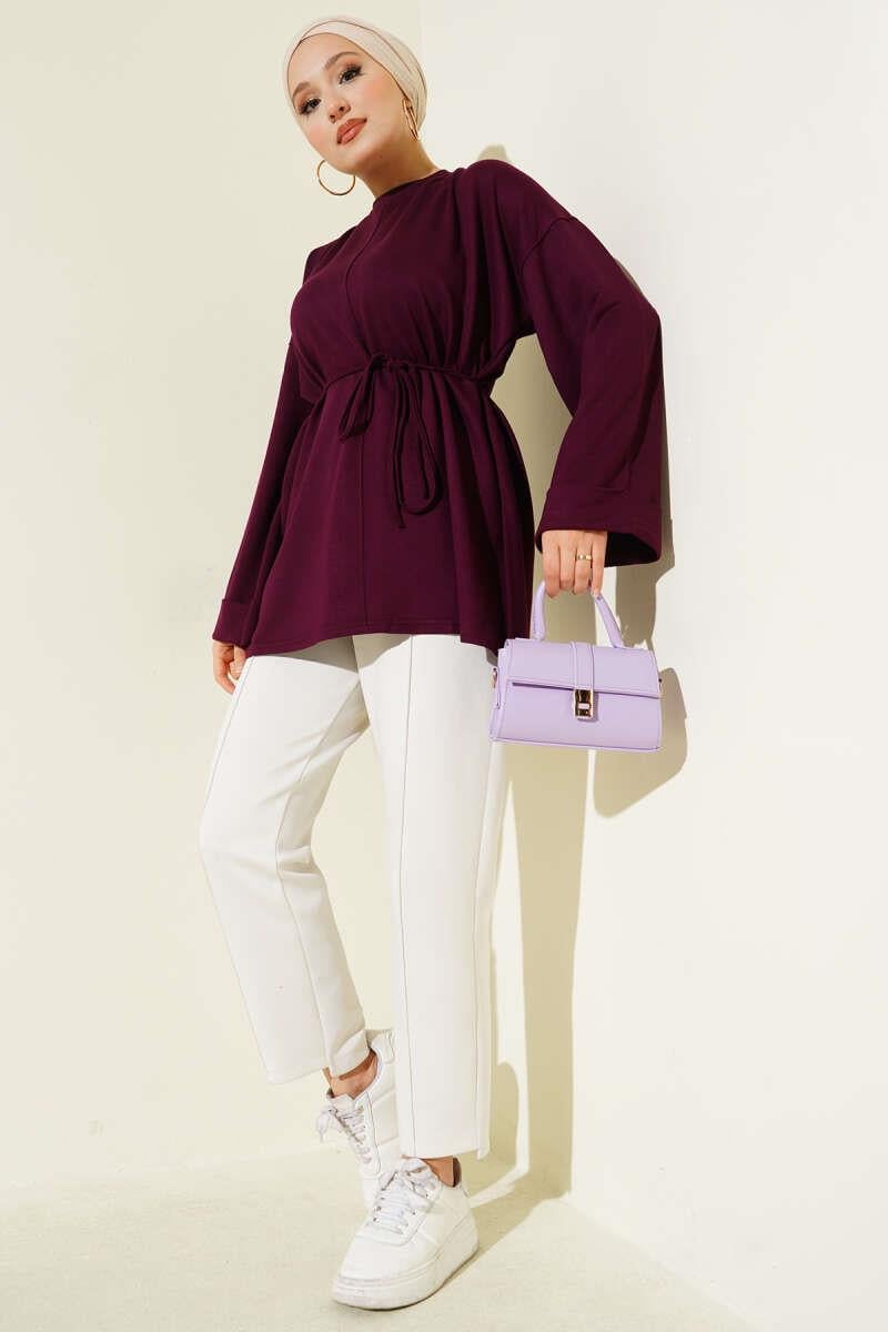 Side Slit Double Sleeve Tunic Plum (0997-2405-683251)