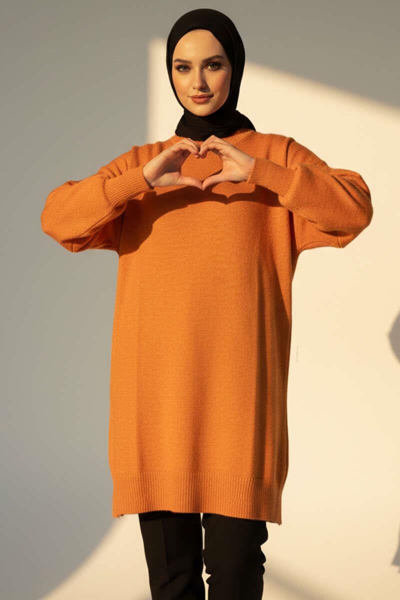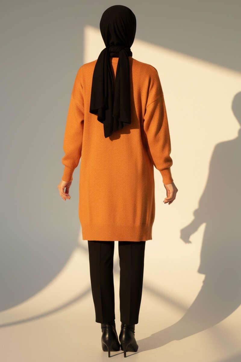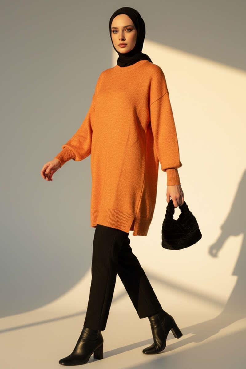 Side Slit Soft Long Knit Tunic Orange (0589-6013-678065)