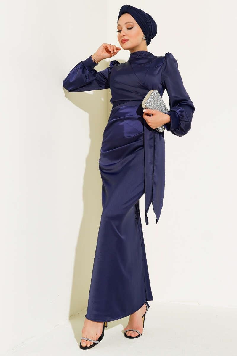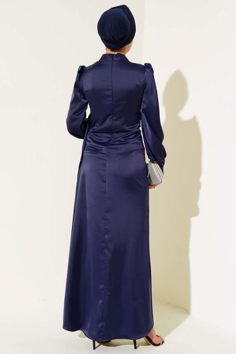 Side Tie Satin Dress Navy Blue (0493-4552-530308)