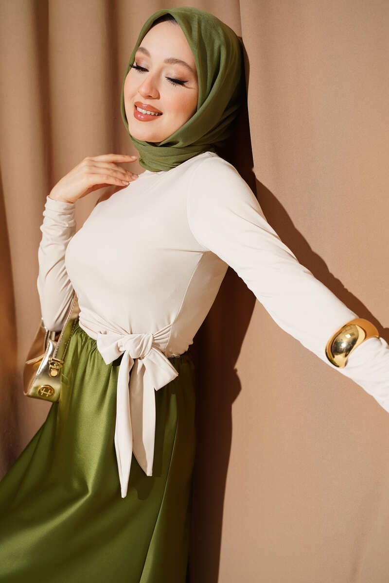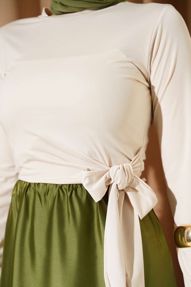 With its soft and flexible sandy fabric texture, it has a comfortable structure that elegantly hugs the body. The modern side-tie belt detail at the waist adds movement to the design and allows you to accentuate your silhouette as you wish. Thanks to its minimalist and simple cut, it offers versatile use both with fabric trousers for office elegance and with skirts for special occasion combinations. Model Information: Height: 167 cm, Chest: 84 cm, Waist: 65 cm, Hips: 95 cm. The product on the model is size S/M.