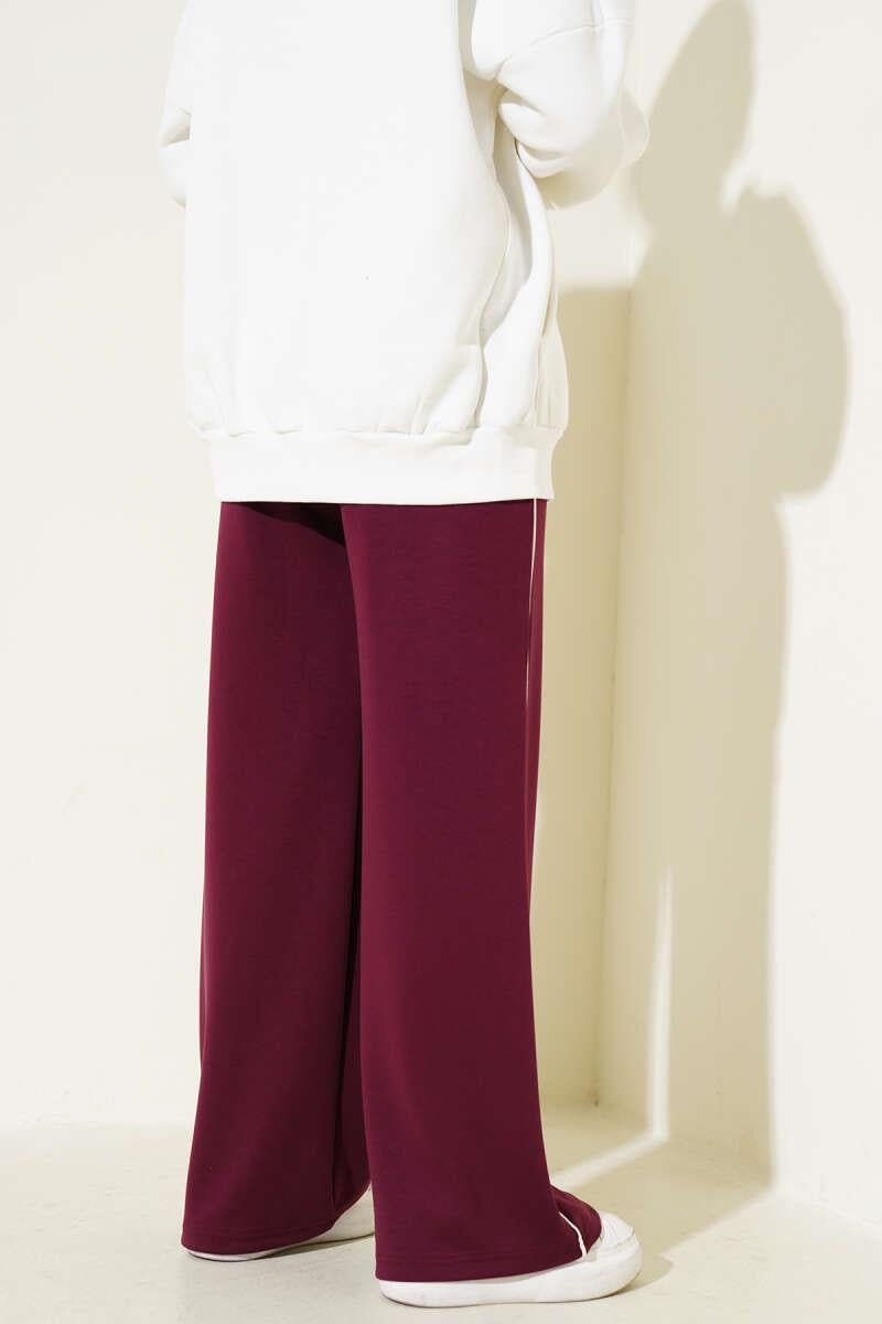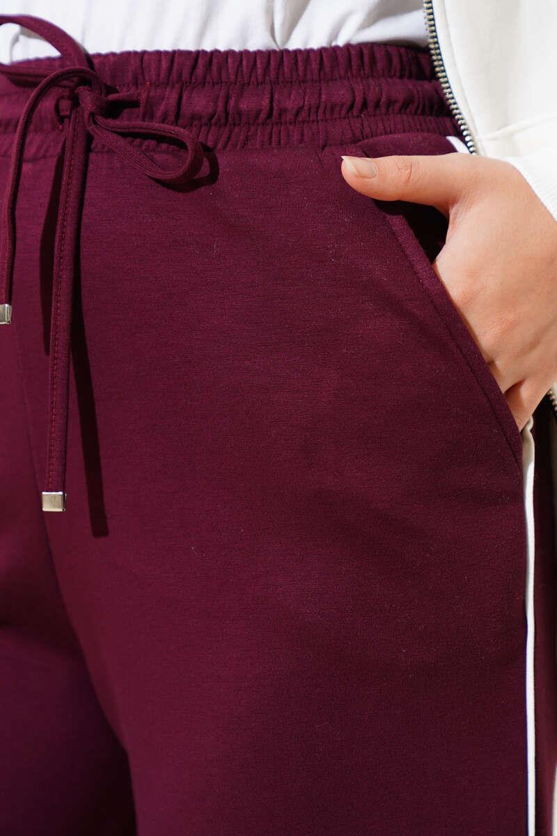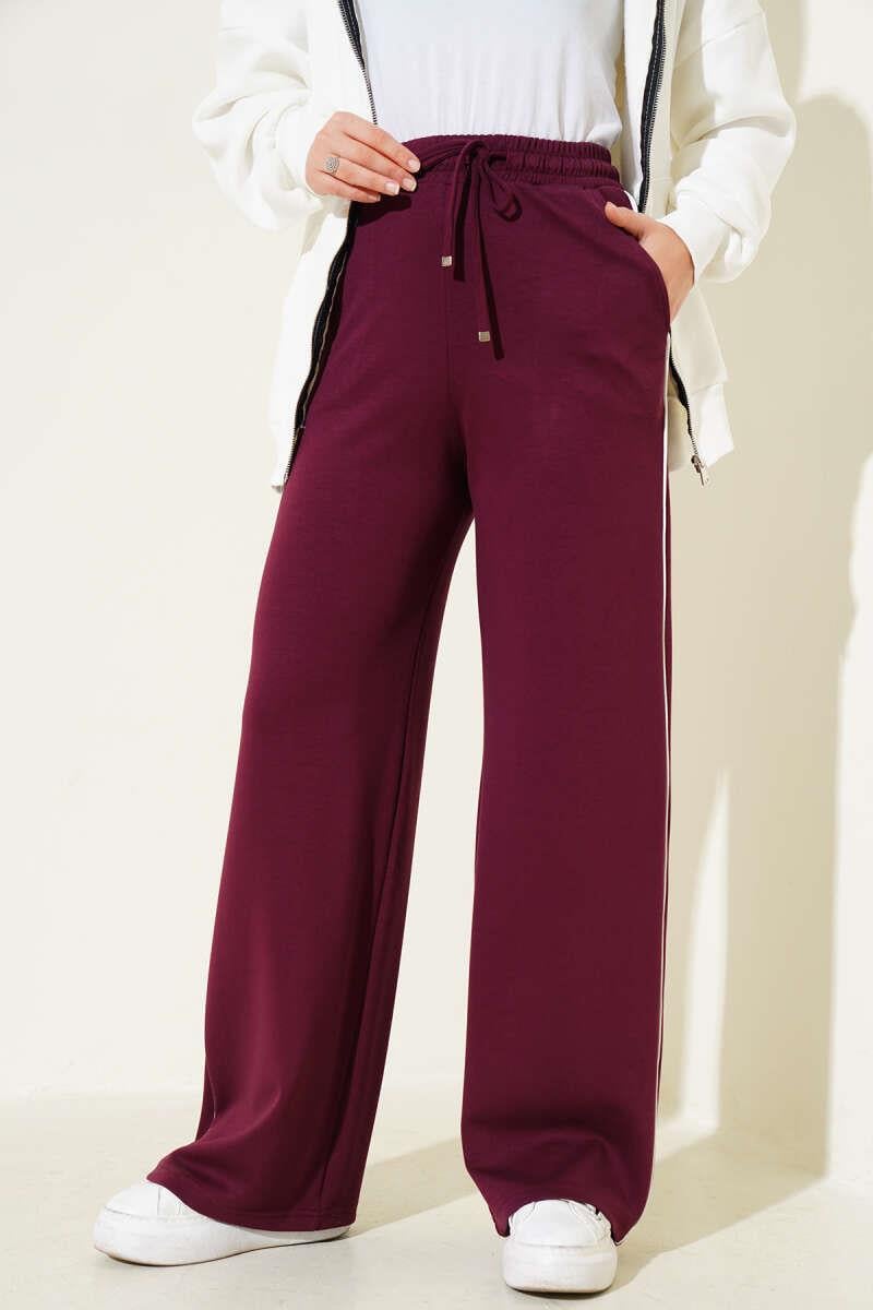 Side Piping Elastic Waist Trousers Burgundy (0643-453-675646)