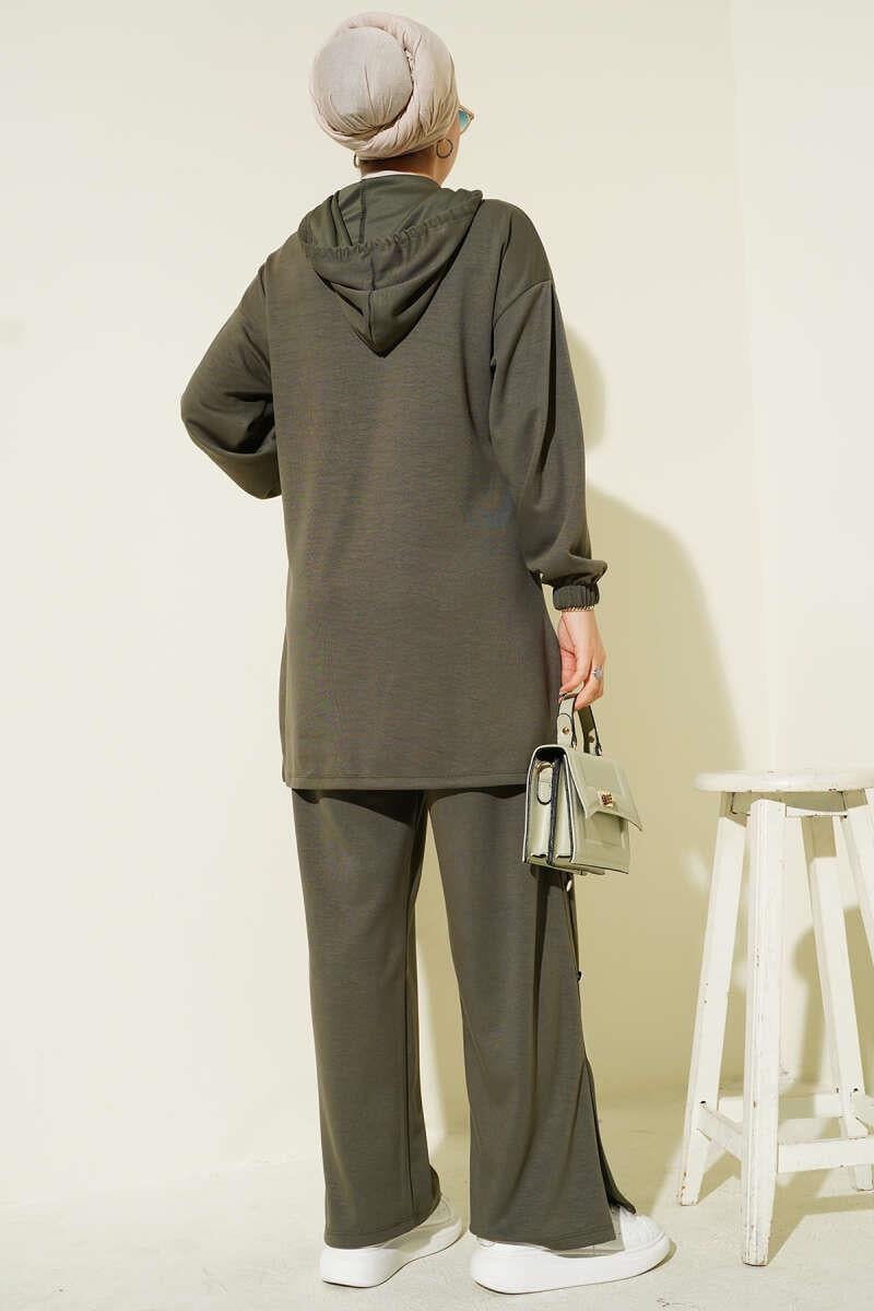 Hooded Two-Piece Suit Khaki with Metal Buttons on the Sides (0829-5376-681619)