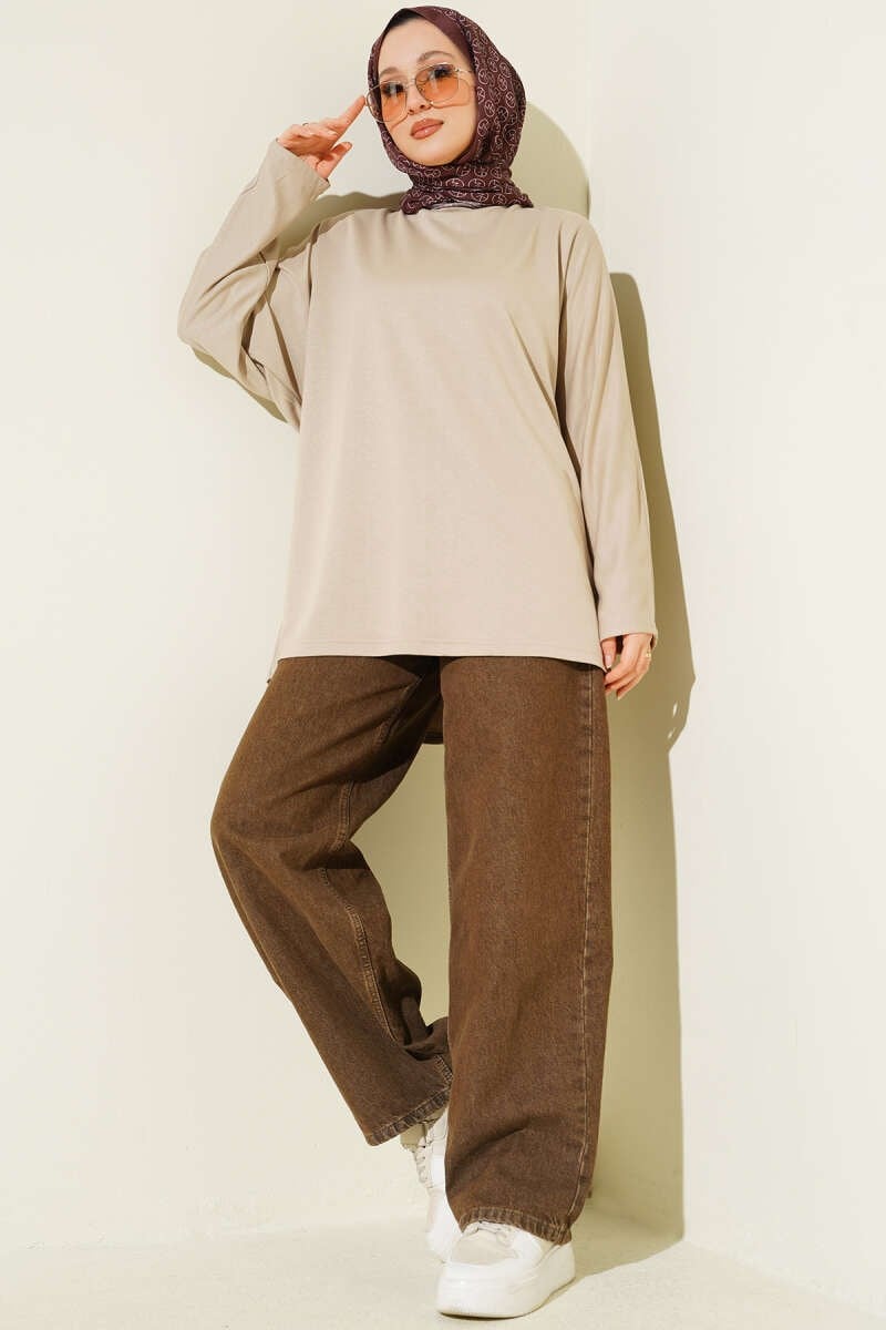 The Batwing Sleeve Basic Loysa Tunic promises all-day comfort with its flowing cut that combines effortless style and comfort. One of the most beloved versatile pieces in the Women's Tunic category, this design easily matches any outfit with its wide range of colors including ecru, gray, brown, navy blue, pink, yellow, black, and green. With its soft texture and modern batwing sleeve details, it's an ideal choice to complement both your sporty and everyday style.