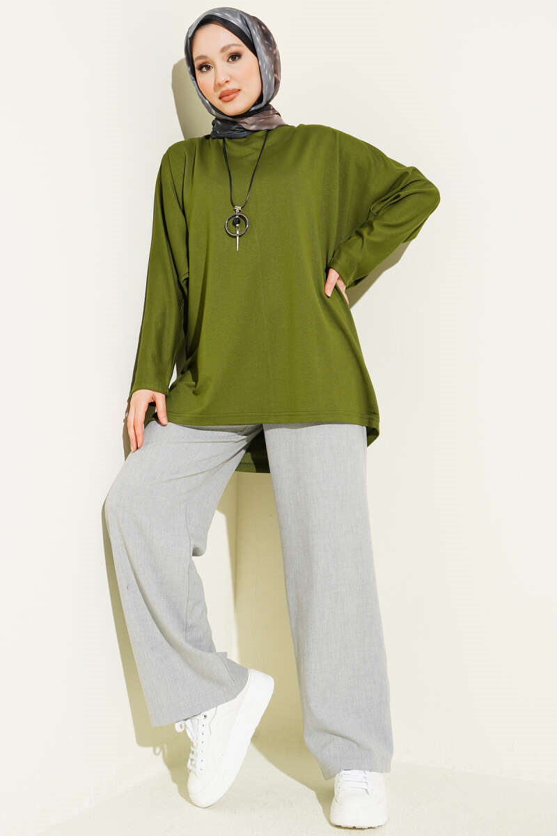 The Batwing Sleeve Basic Loysa Tunic promises all-day comfort with its flowing cut that combines effortless style and comfort. One of the most beloved versatile pieces in the Women's Tunic category, this design easily matches any outfit with its wide range of colors including ecru, gray, brown, navy blue, pink, yellow, black, and green. With its soft texture and modern batwing sleeve details, it's an ideal choice to complement both your sporty and everyday style.