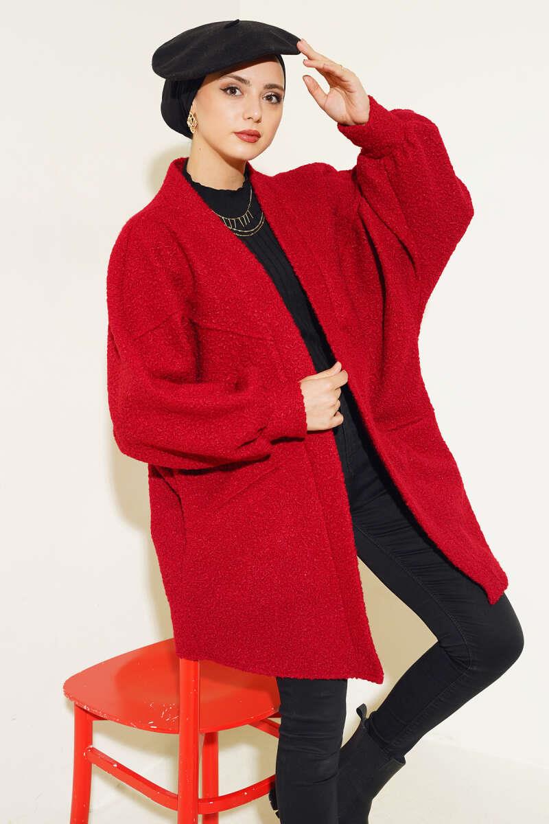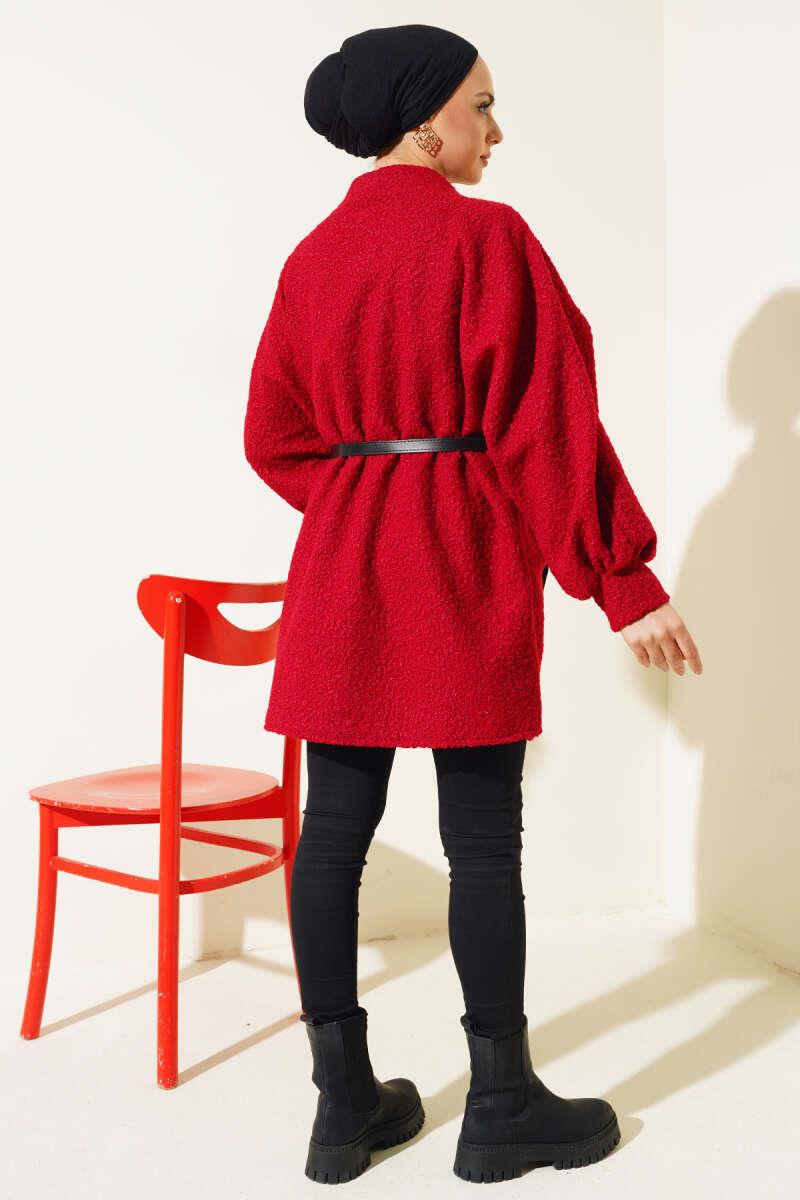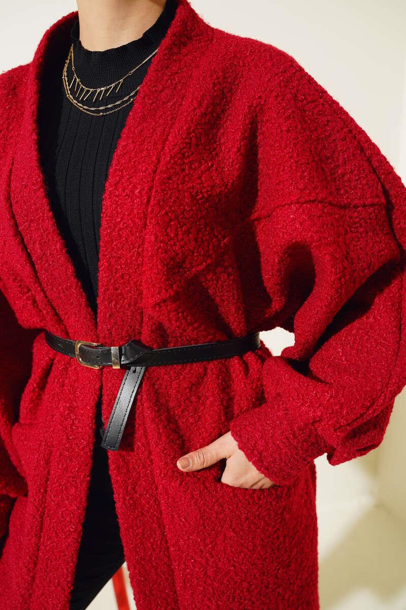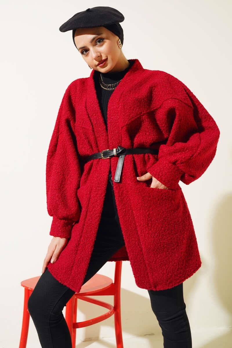 Bat Sleeve Belted Boucle Jacket Claret Red (0582-12957-579824)