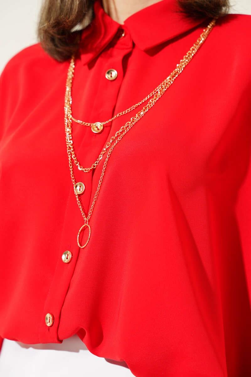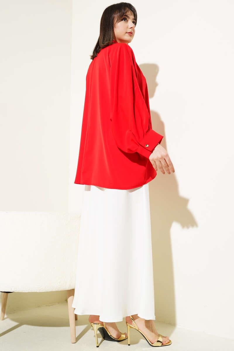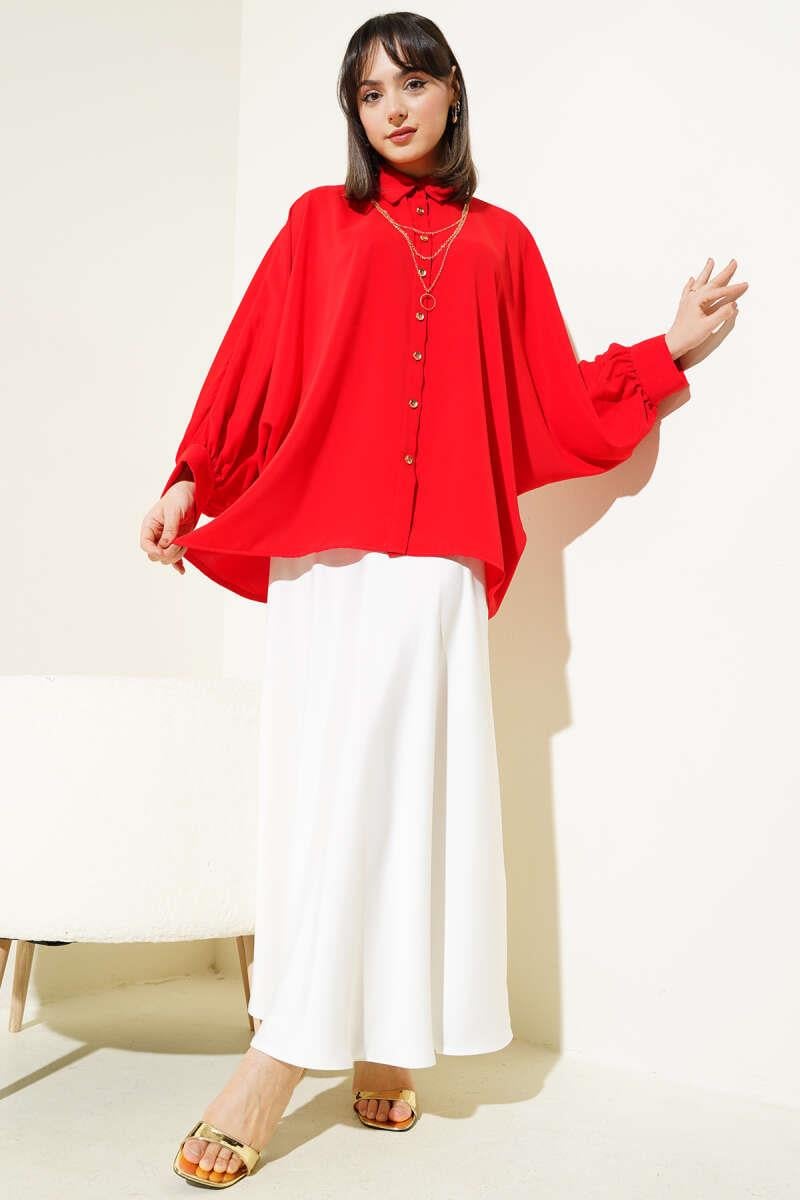 Oversize Shirt with Batwing Sleeve Necklace, Red (0532-2454-615837)