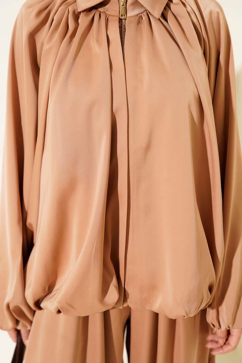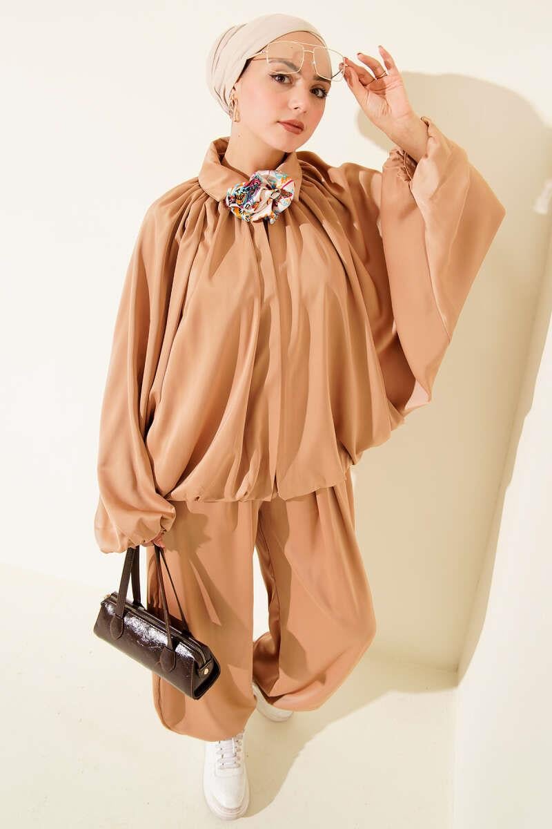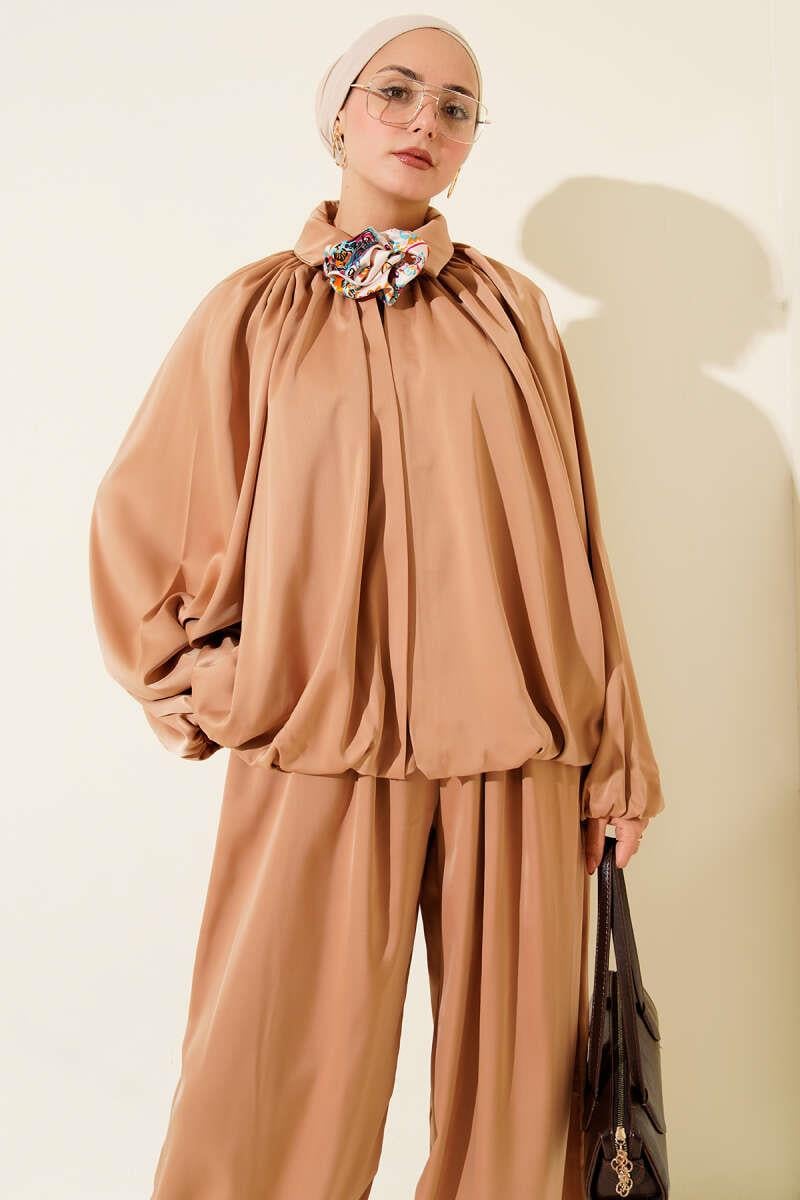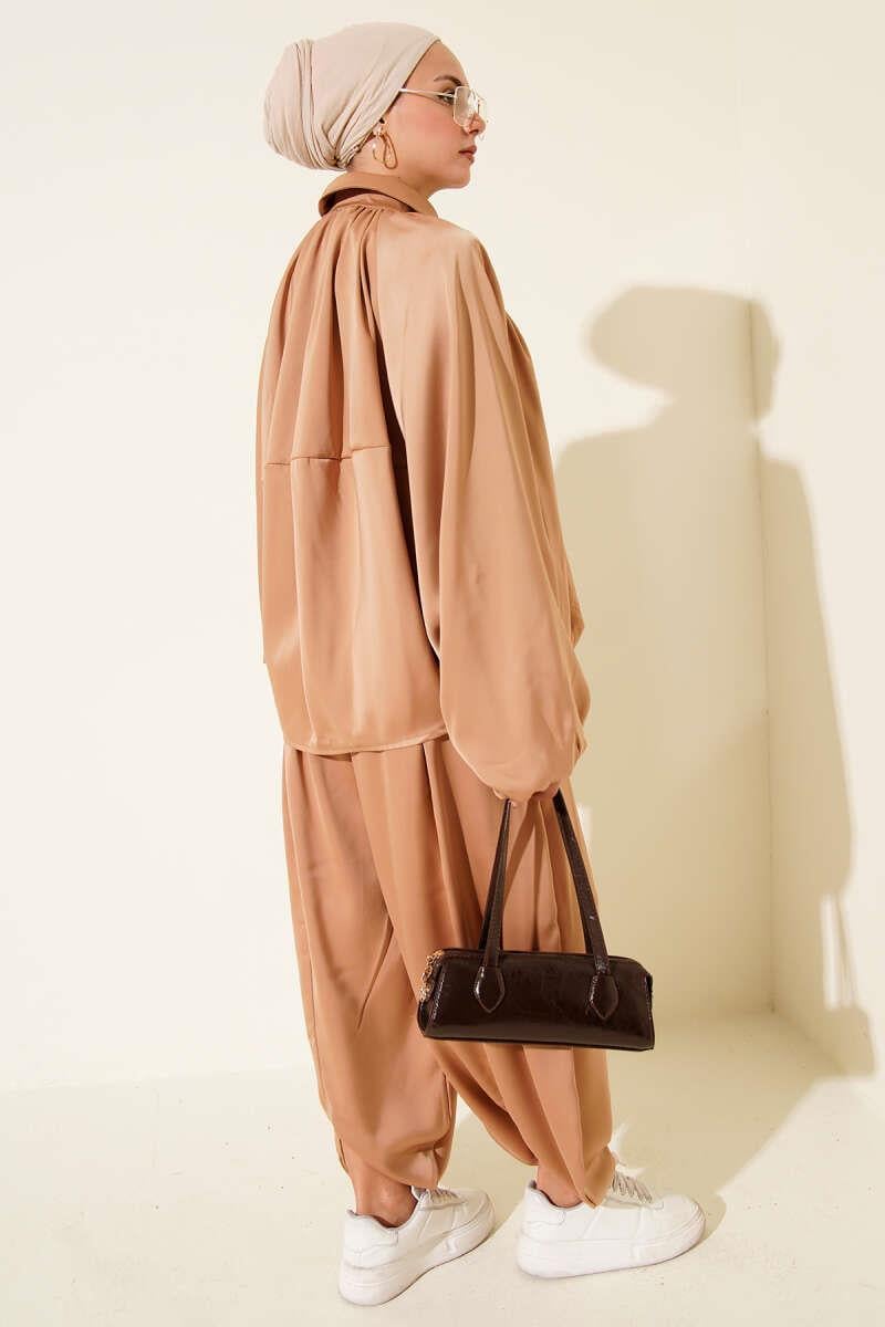 Batwing Sleeve Satin Loose 2 Piece Set Latte (0853-3015-25-681235)
