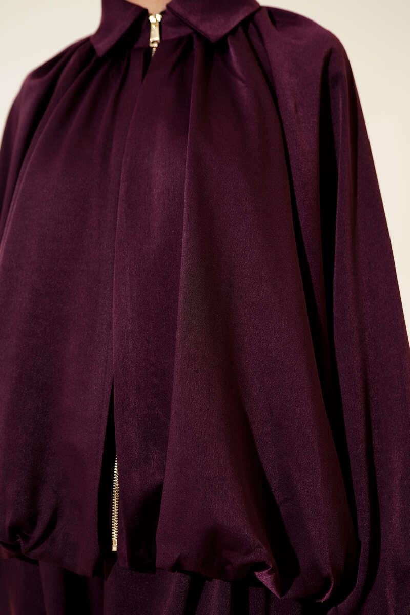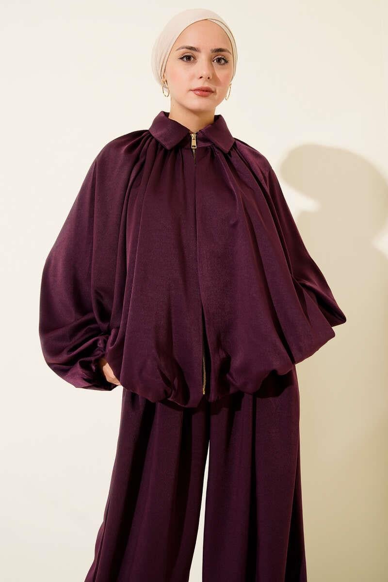 Batwing Sleeve Satin Loose 2 Piece Set Plum (0853-3015-25-681237)