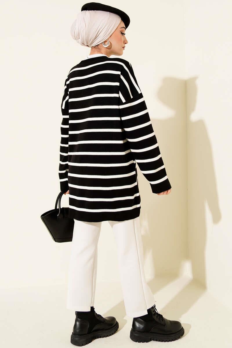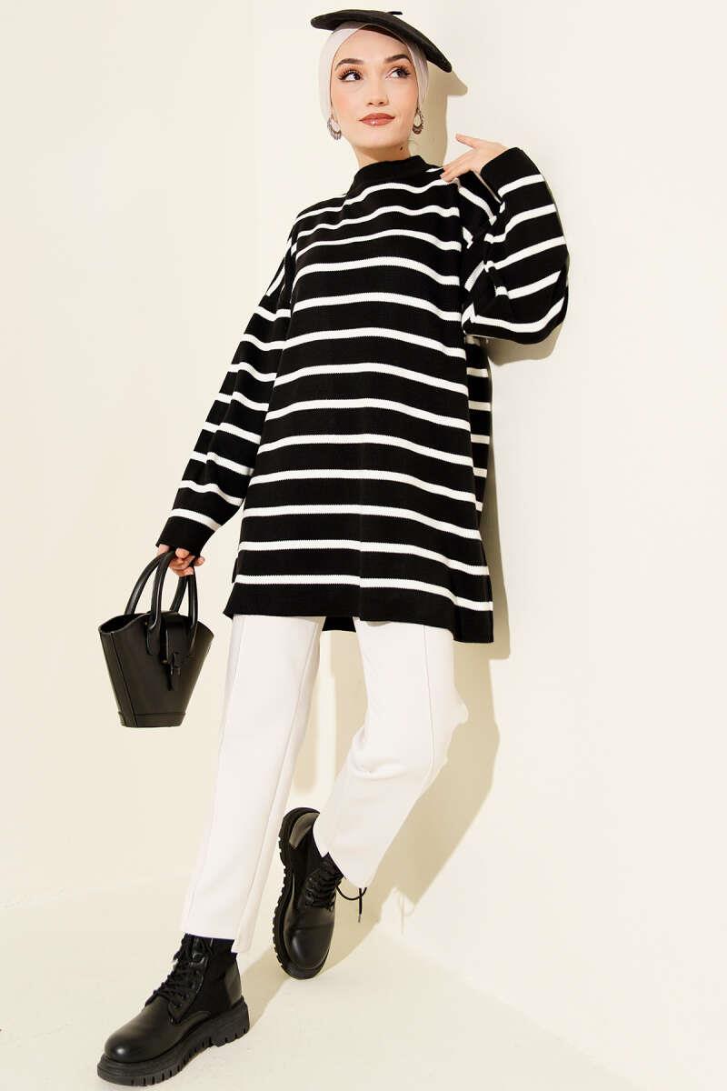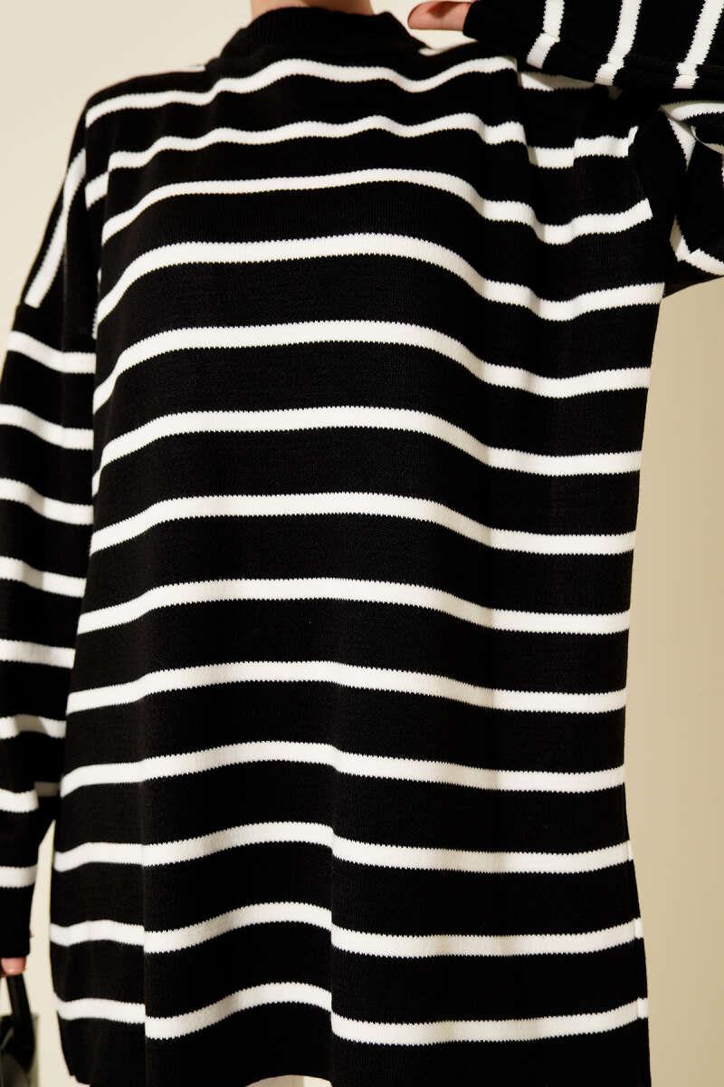 Horizontal Stripe Detailed Basic Knit Tunic Black (0875-6038-694788)
