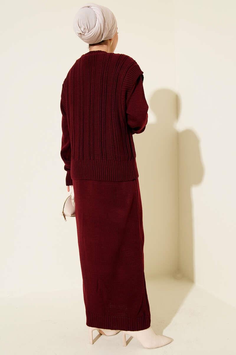 Vest and Dress Knitwear 2 Piece Set Burgundy (0026-2021-691168)