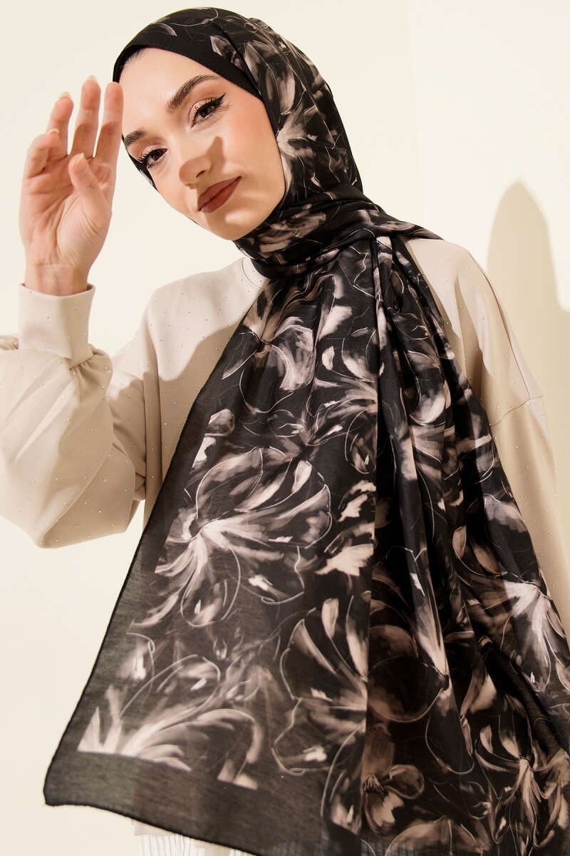 Lily Pattern Soft Scarf Anthracite (8140-4785-707011)