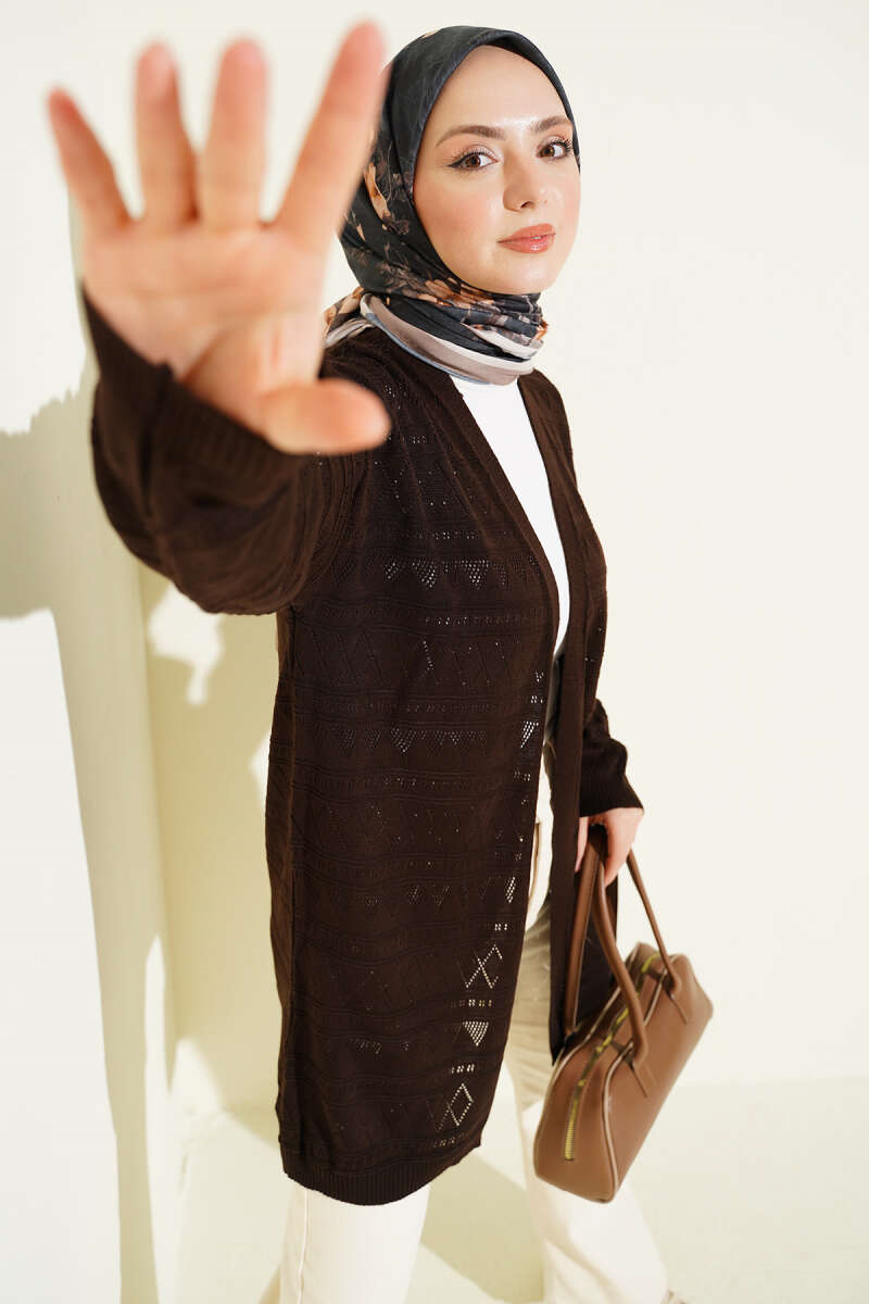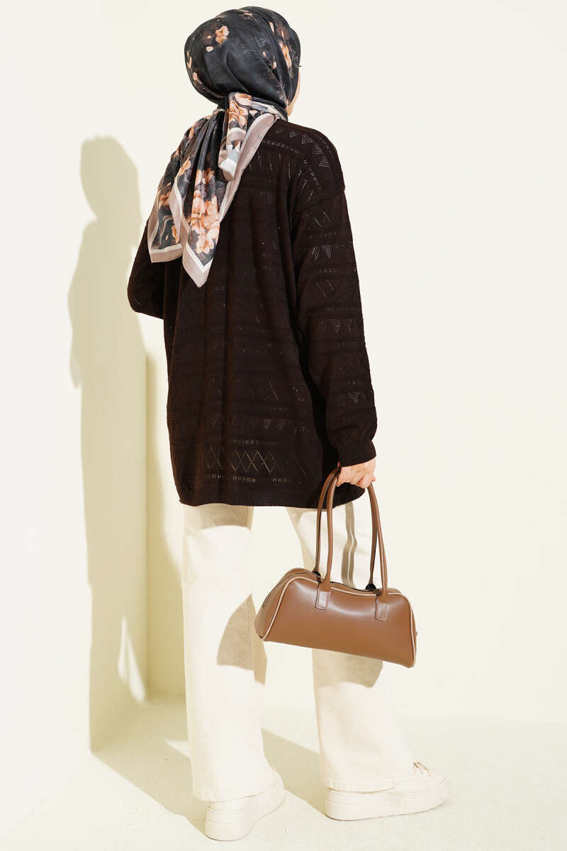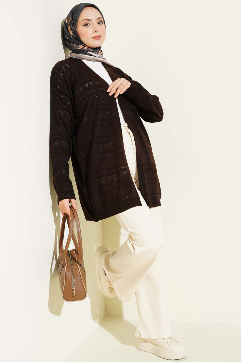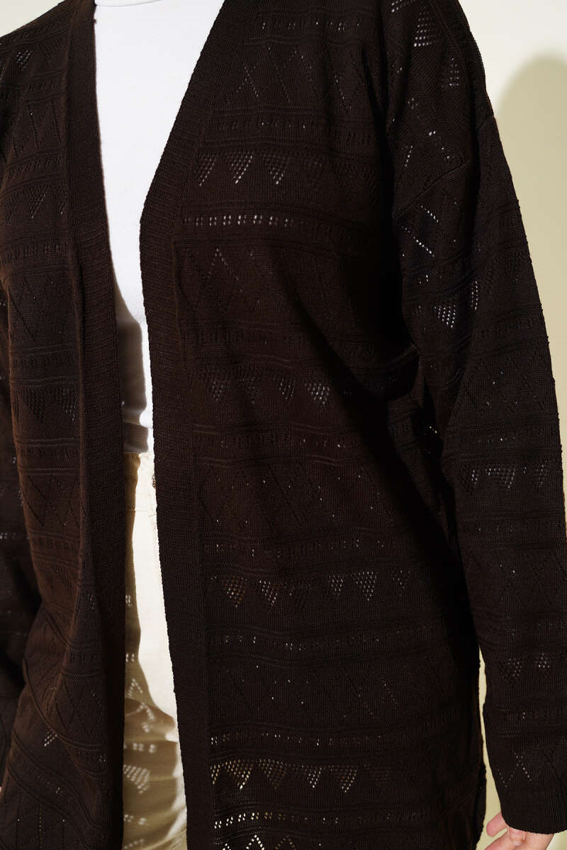 Zigzag Openwork Basic Knit Cardigan Dark Brown (8374-9881-734683)