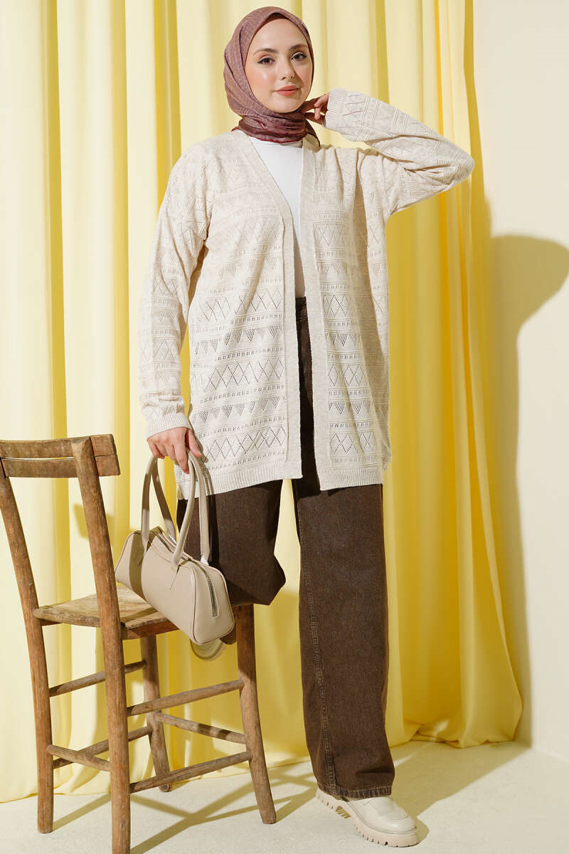 Zigzag Openwork Basic Knit Cardigan Stone (8374-9881-734685)