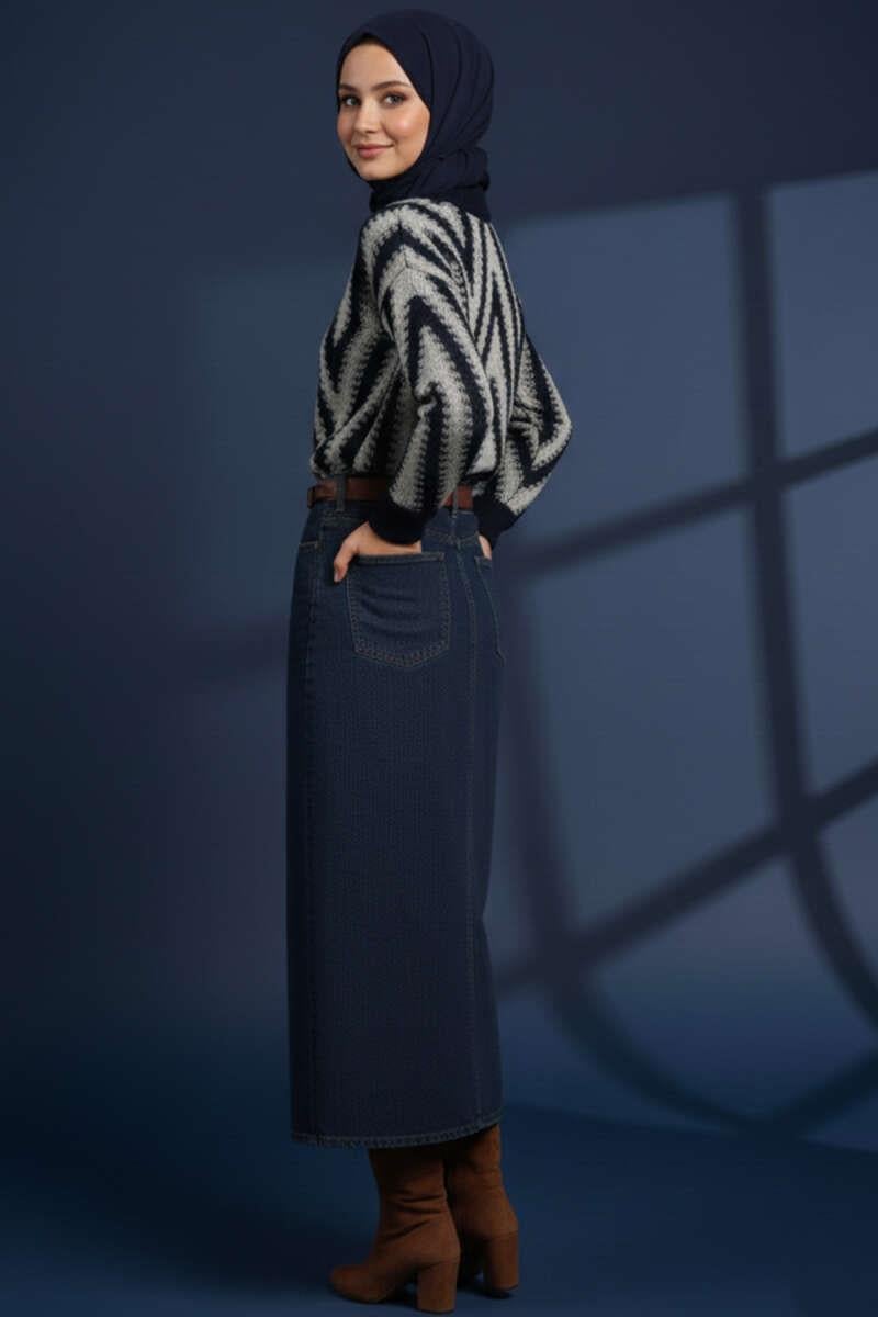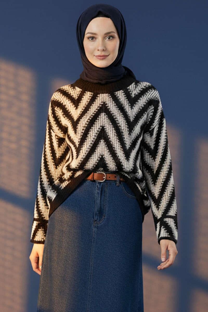 Zigzag Pattern Knitwear Sweater Navy Blue (0589-1048-677742)