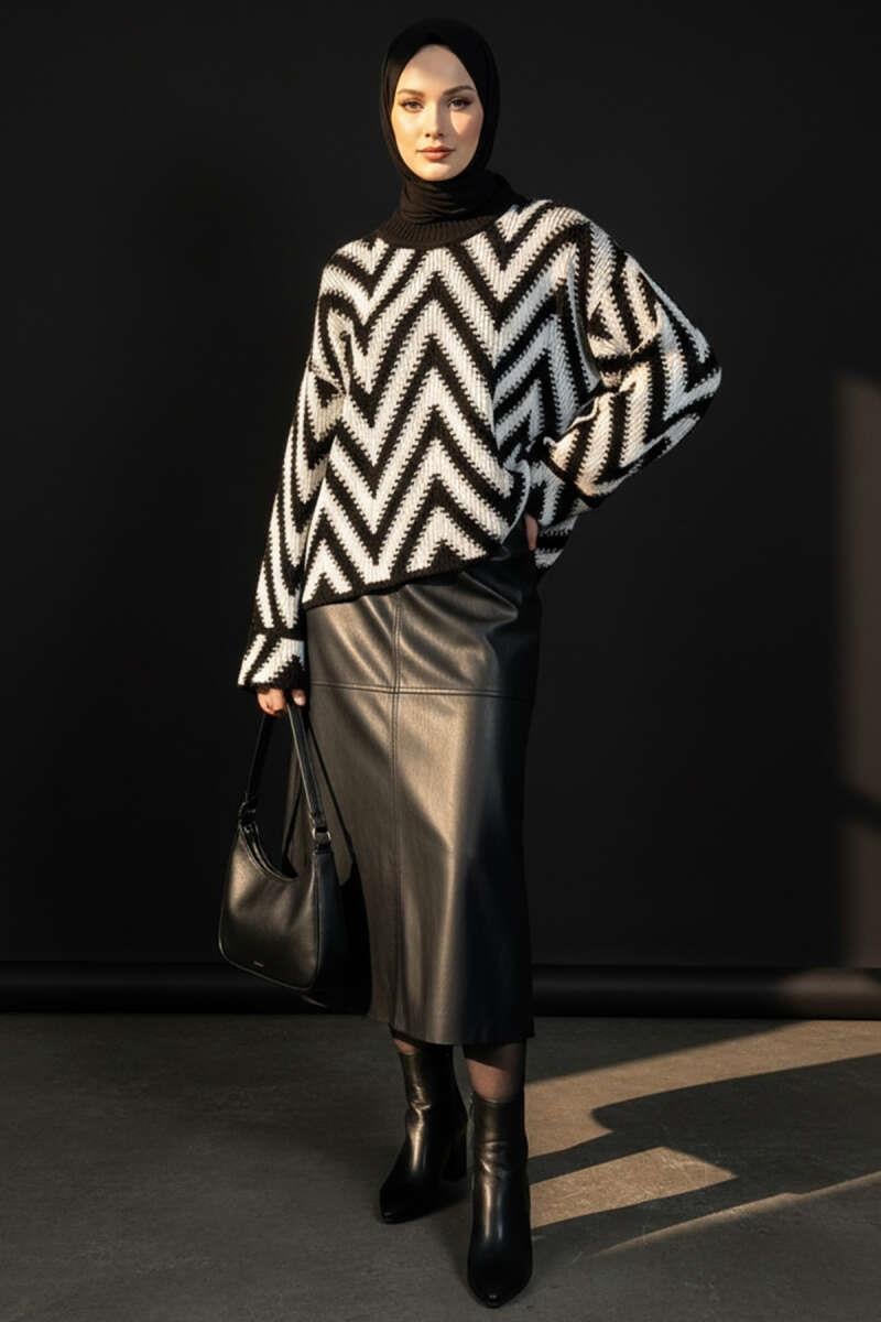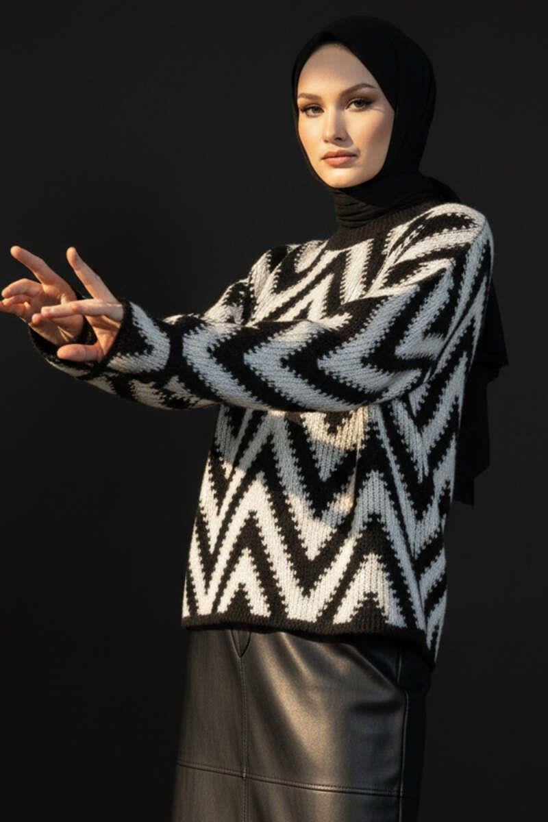 Zigzag Pattern Knitwear Sweater Black (0589-1048-677743)