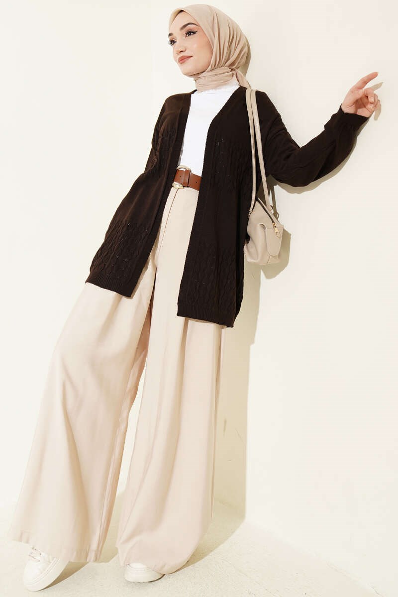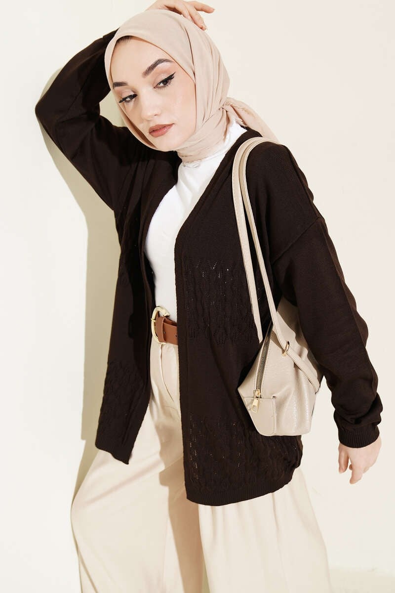 Zigzag Patterned Knitted Basic Cardigan, Brown