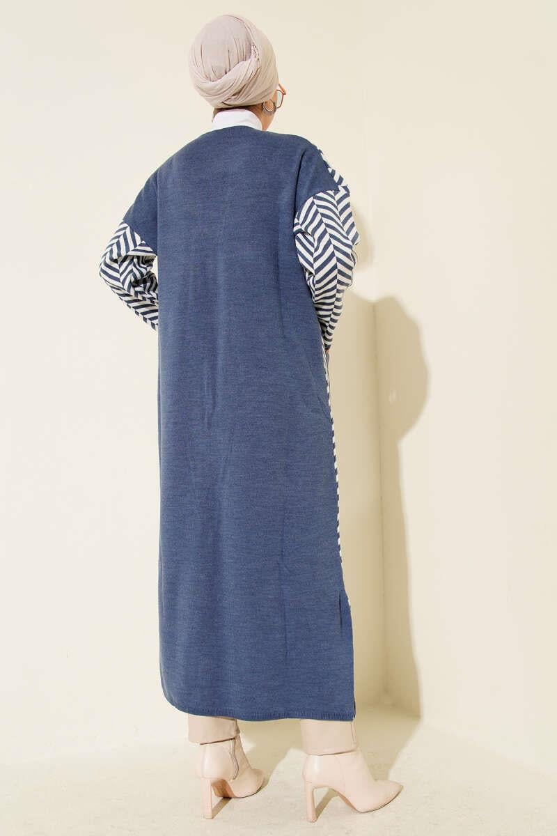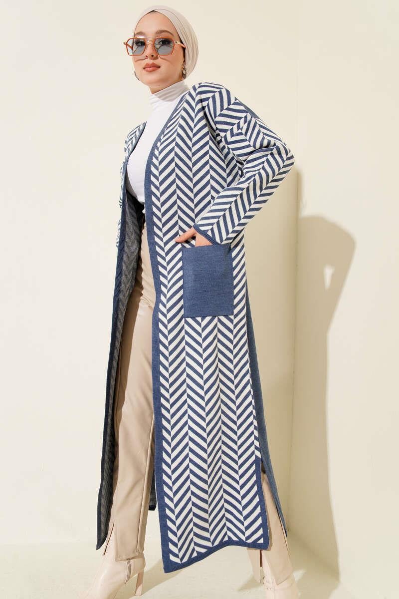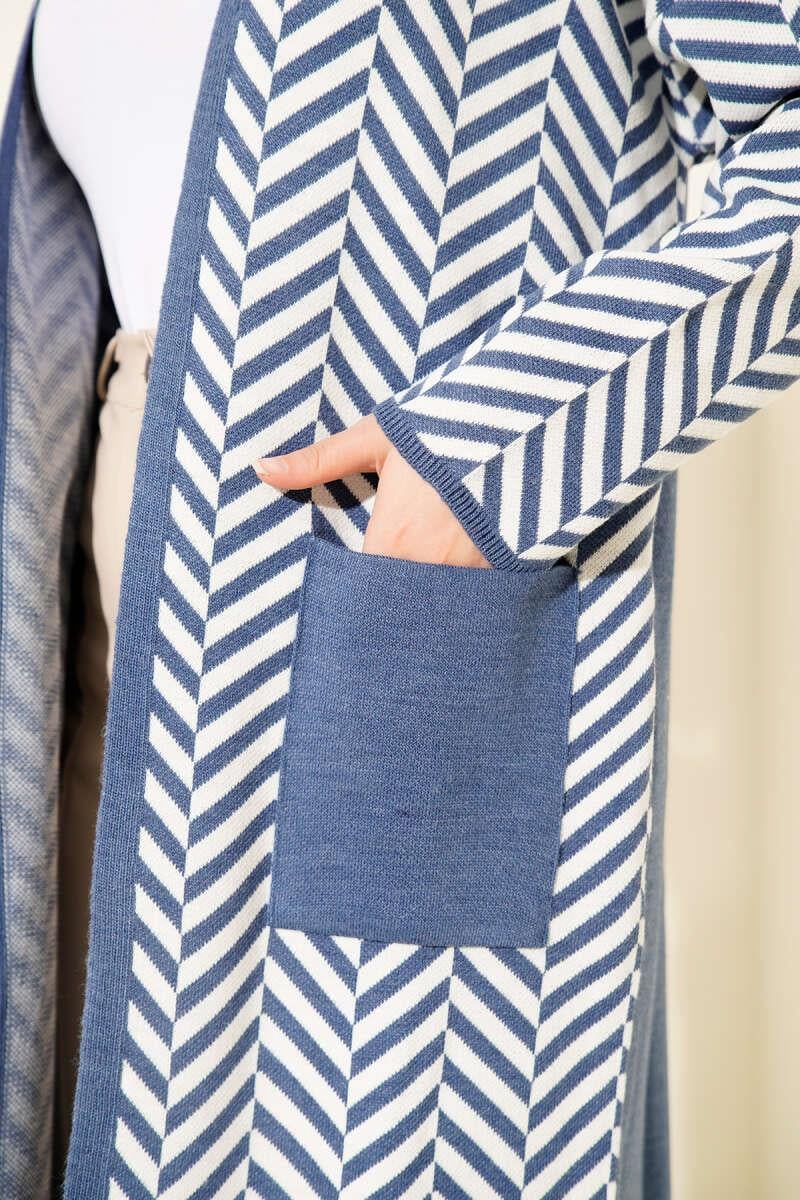 Zigzag Striped Patterned Long Knit Cardigan Indigo (0875-7157-671528)